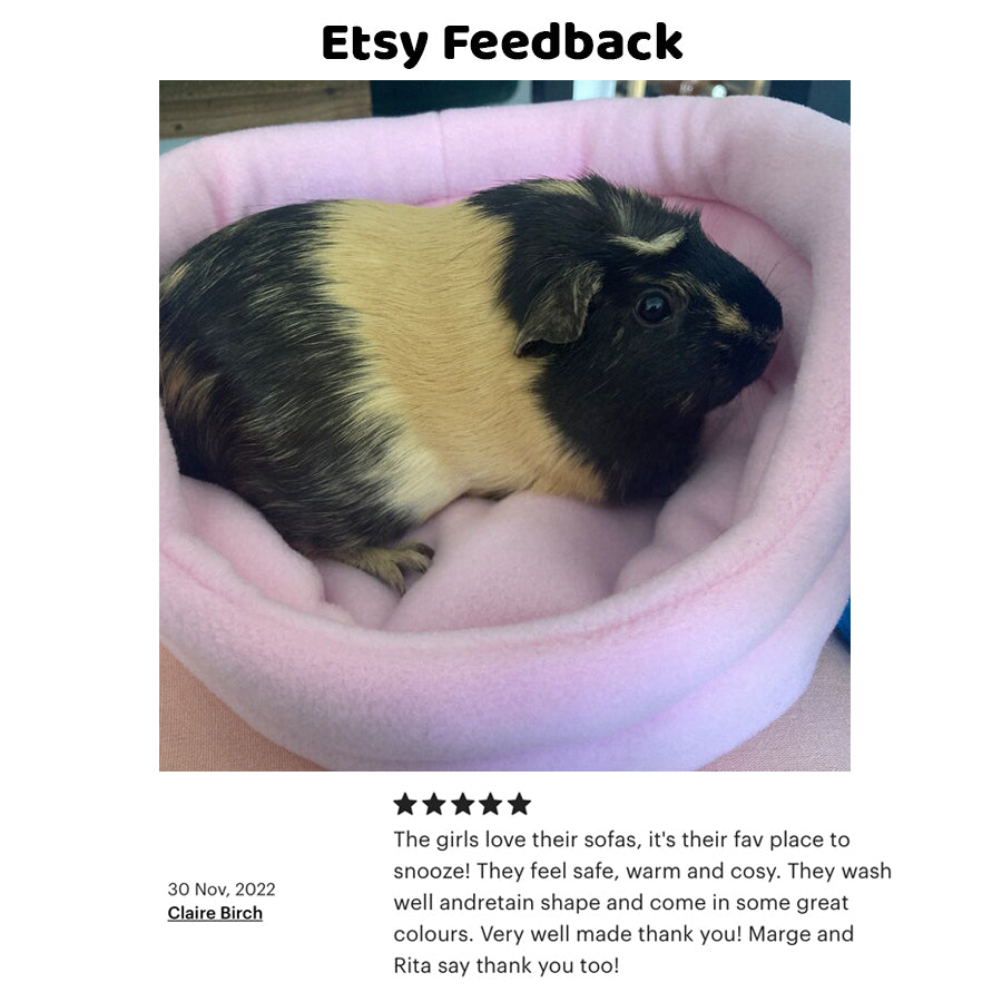 Let your guinea pig experience the luxury of our Baby Pink Guinea Pig Bed - order yours today and watch your pet snuggle in delight! Give your furry friend the gift of comfort, handmade with love by Toffee Apple Studios.