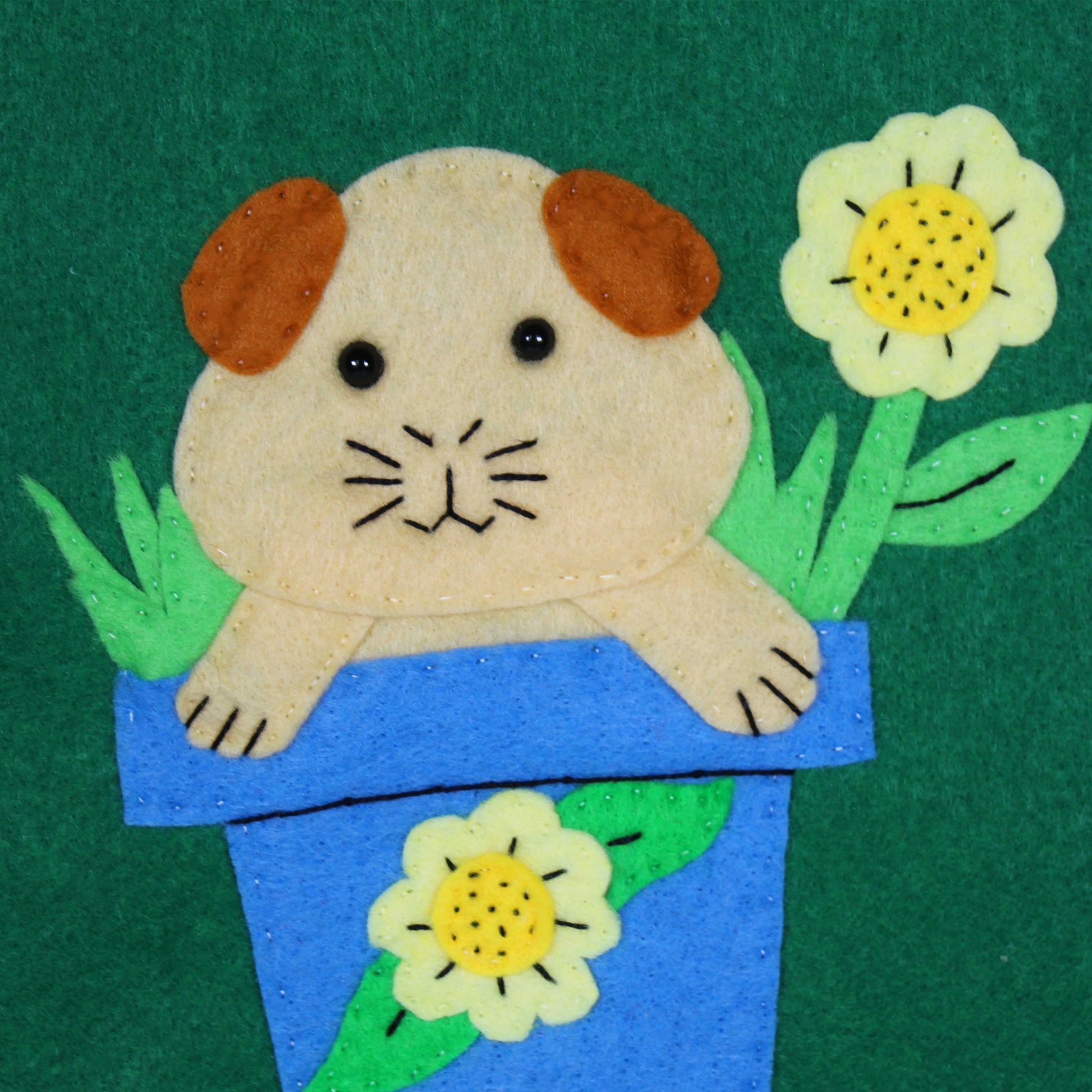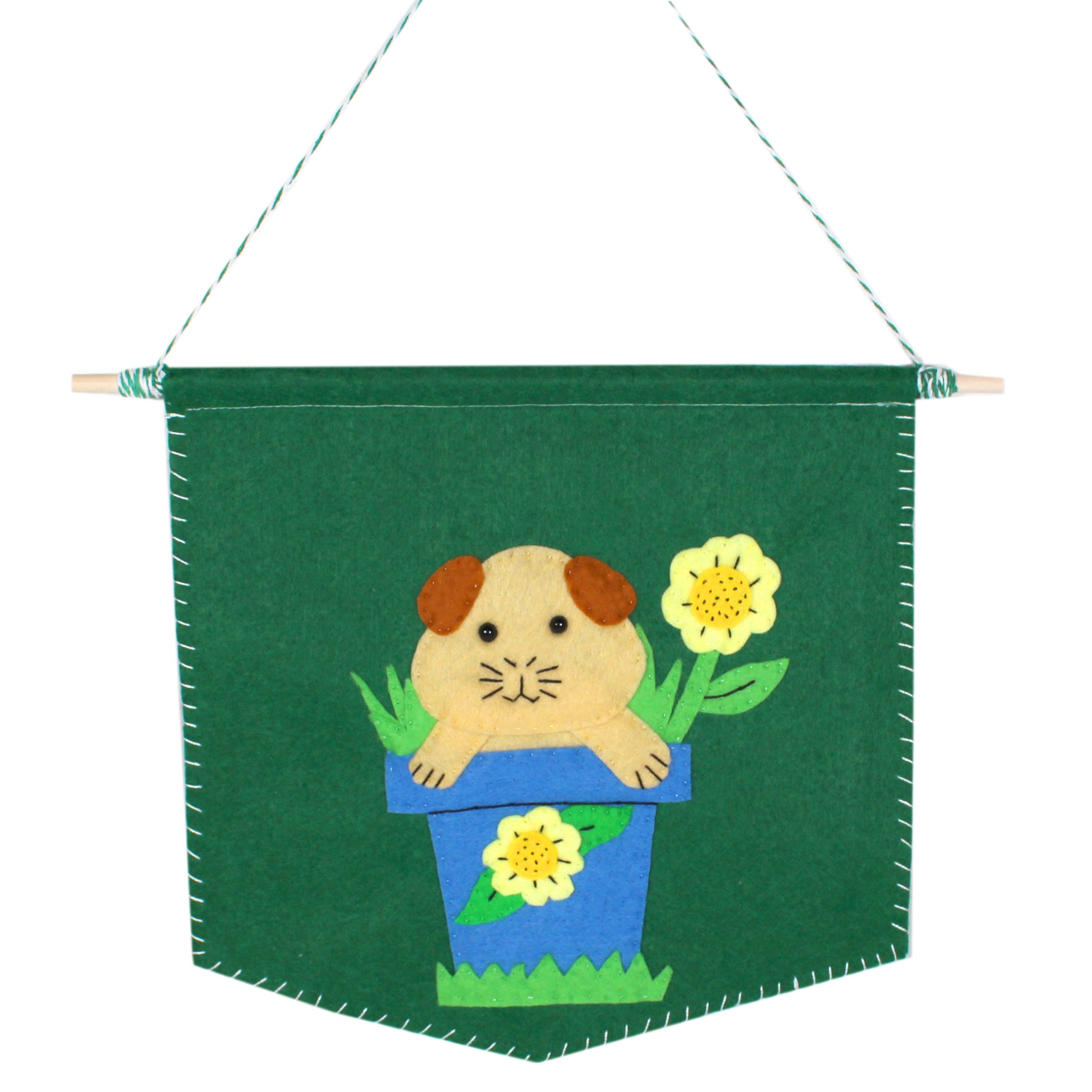 Felt Guinea Pig In Flower Plant Pot - Wall Hanging Flag