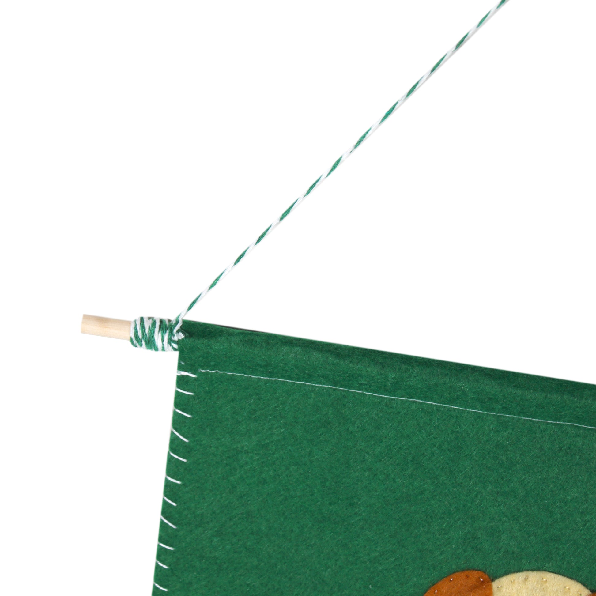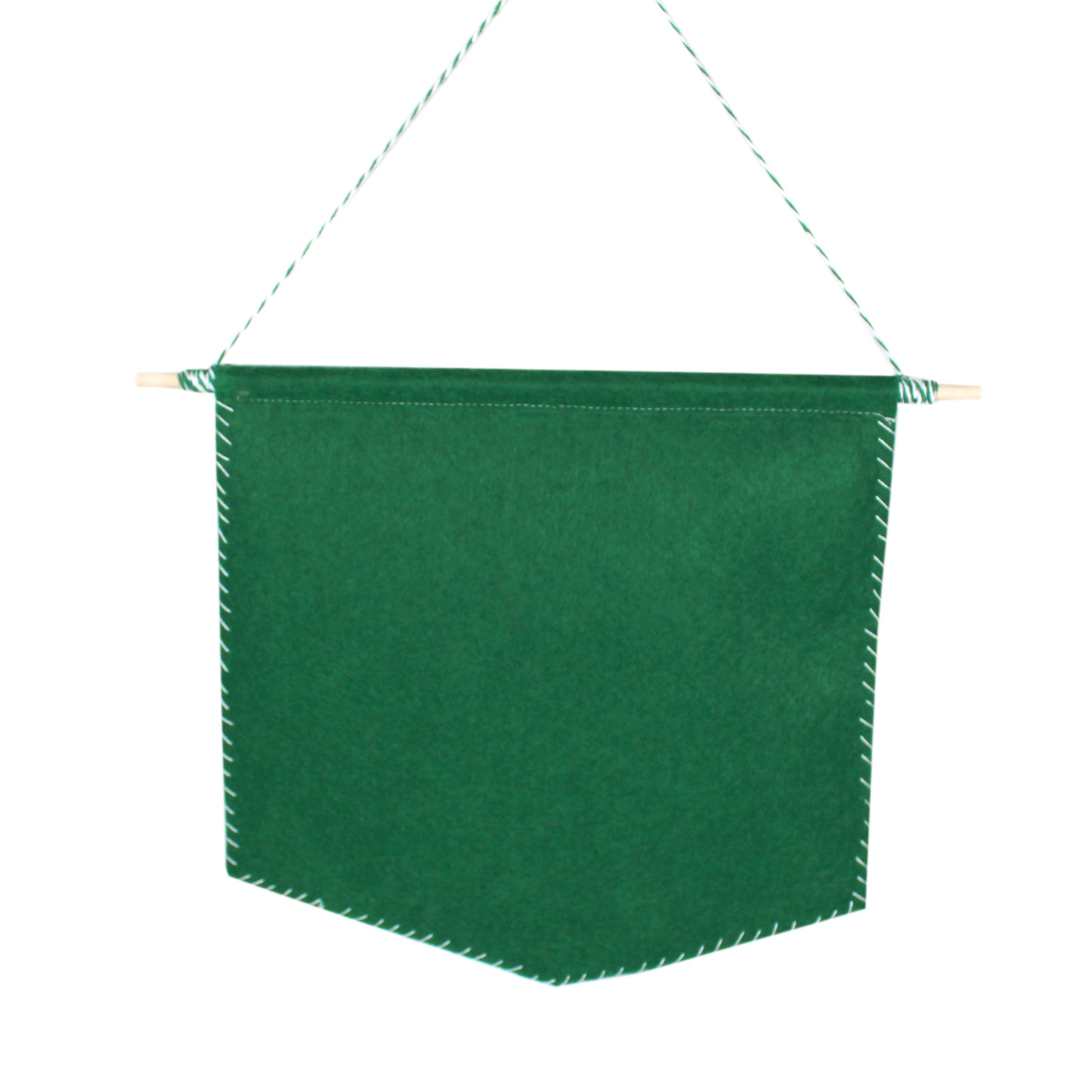 This felt 'Guinea Pig' on front has been hand cut out and sewn to the flag hanging. The Guinea pig pop corn design flag is made up of coloured felt pieces. The flag has hand embroidered features and plastic eyes. The hanger is hung by candy cane rope on a natural wooden pole.