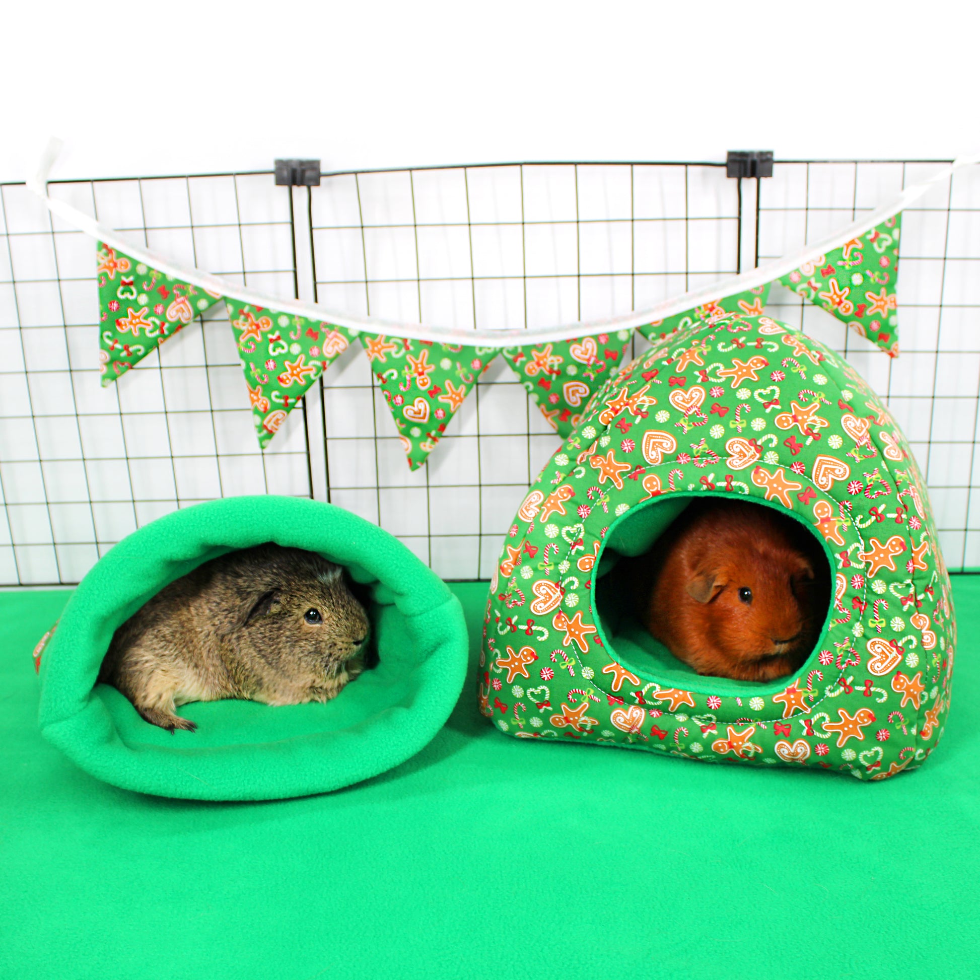 Bring instant holiday cheer to your herd with a snug fleece hidey house that doubles as a stylish festive accent. Handcrafted for guinea pigs, this emerald beauty invites nap-time, zoomies, and shy moments in equal measure. Add to cart today for a winter of warm snuggles and candy-cane charm.