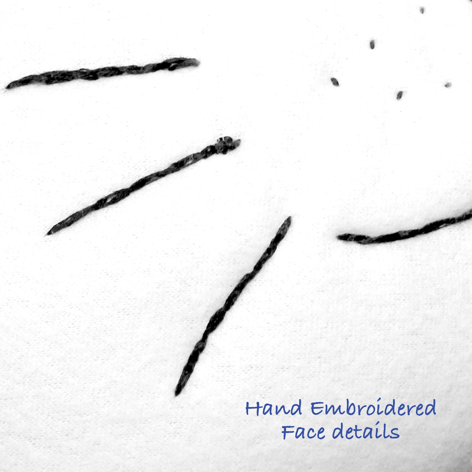 • Materials used - Recycled teddy fleece, shop bought stuffing, embroidered face.