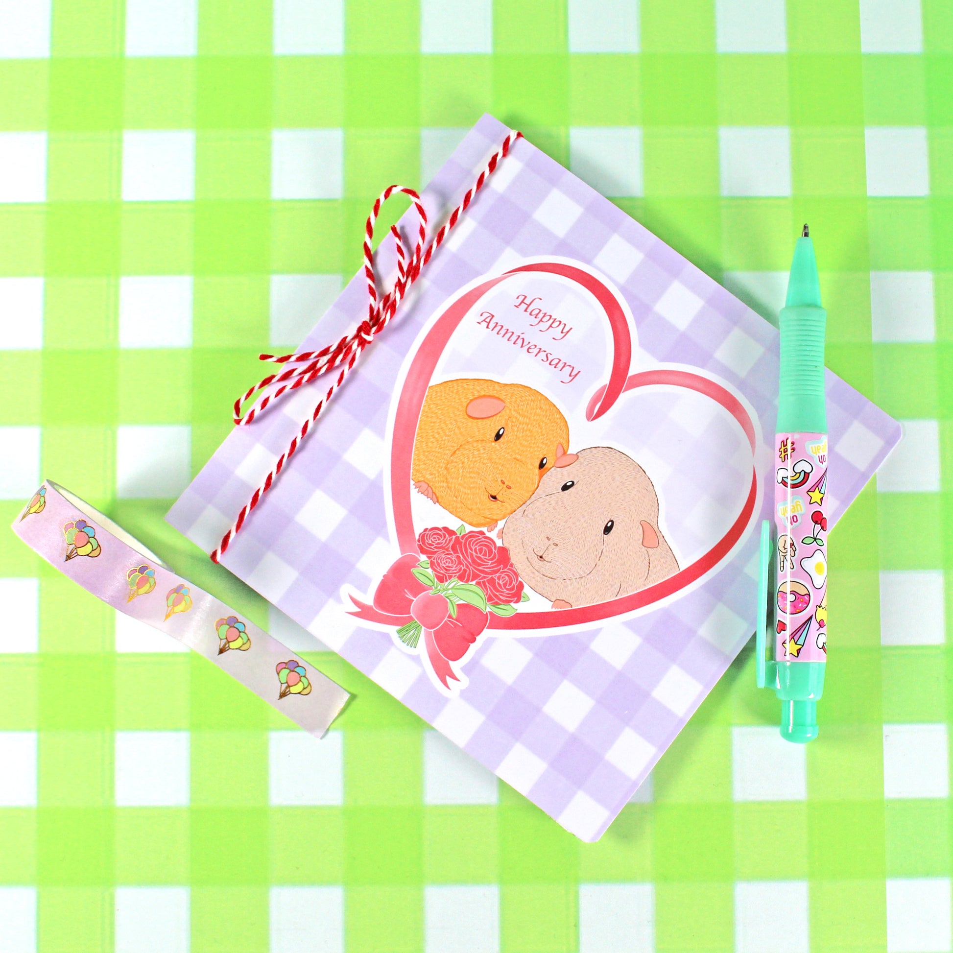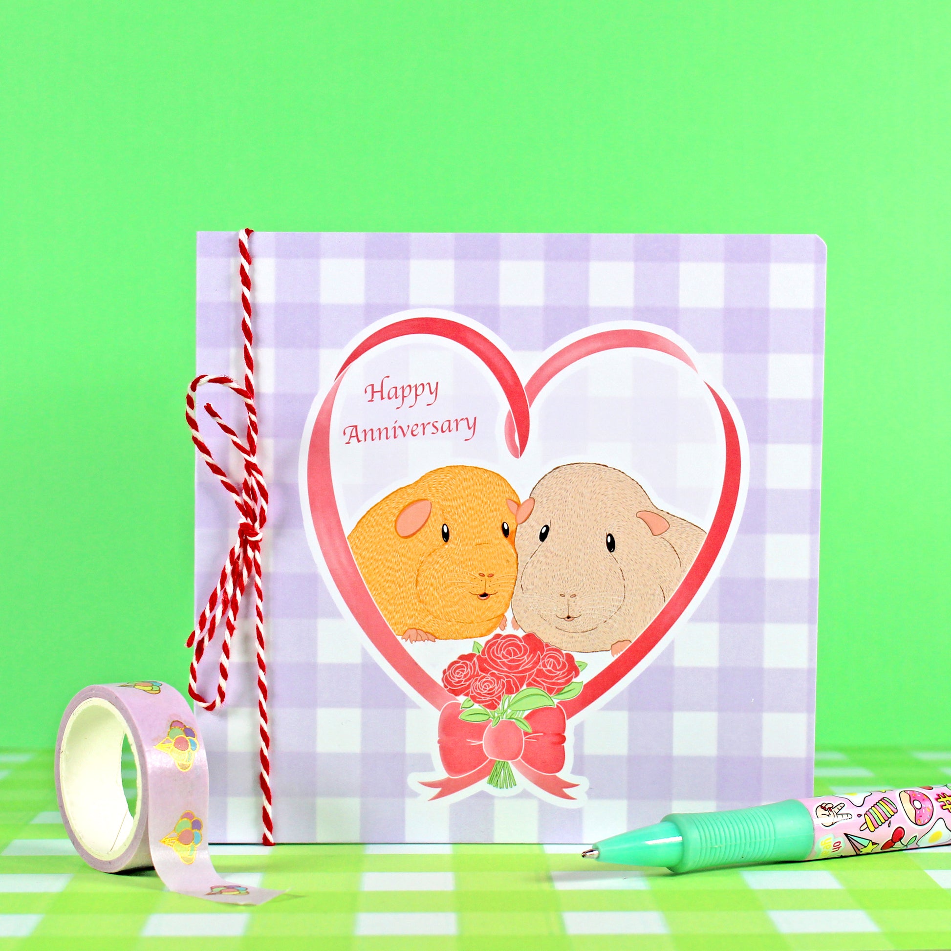 This cute couple of guinea pigs illustration on the front of the card has been inspired by our own herd and weÂ