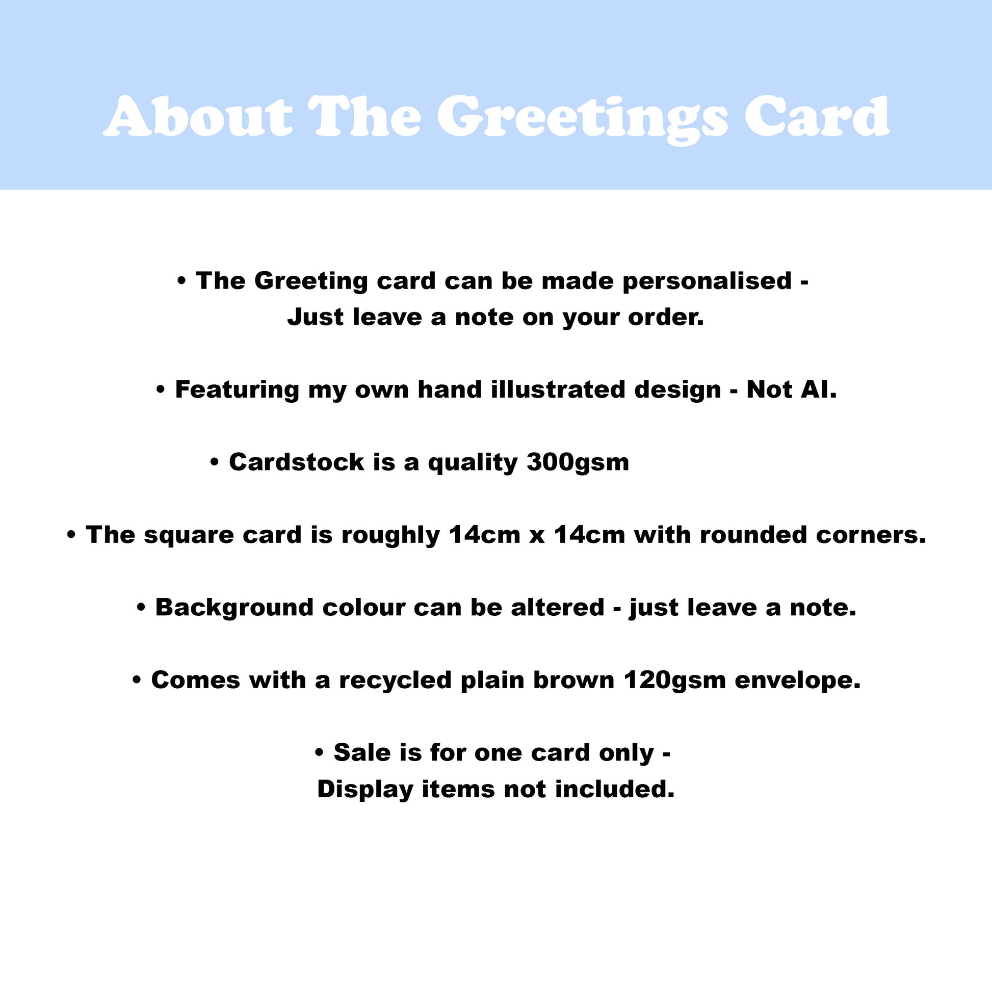 The Illustration on the greetings card has been hand-drawn digitally in our small Yorkshire studio. You will not find this design anywhere else as it is unique to our shop only.