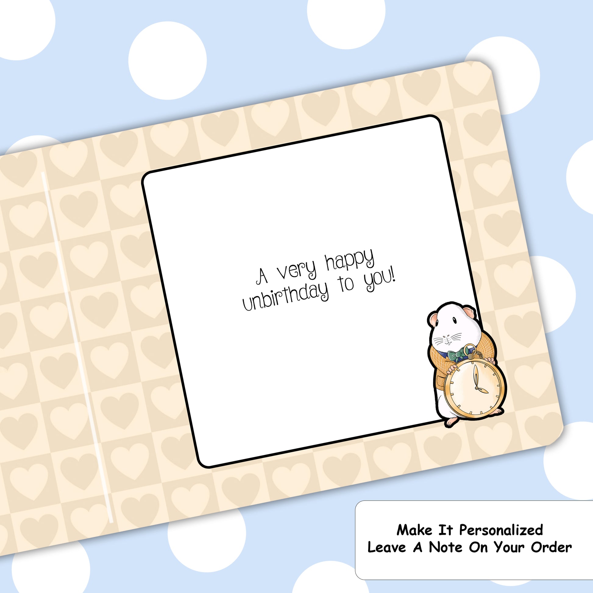 - Personalized Whimsy: This square card, approximately 14cm x 14cm, features a white guinea pig dressed as the iconic White Rabbit from Alice in Wonderland. It's not just a card; it's a whimsical journey into a wonderland of personalization. Add your unique message and let the magic unfold.