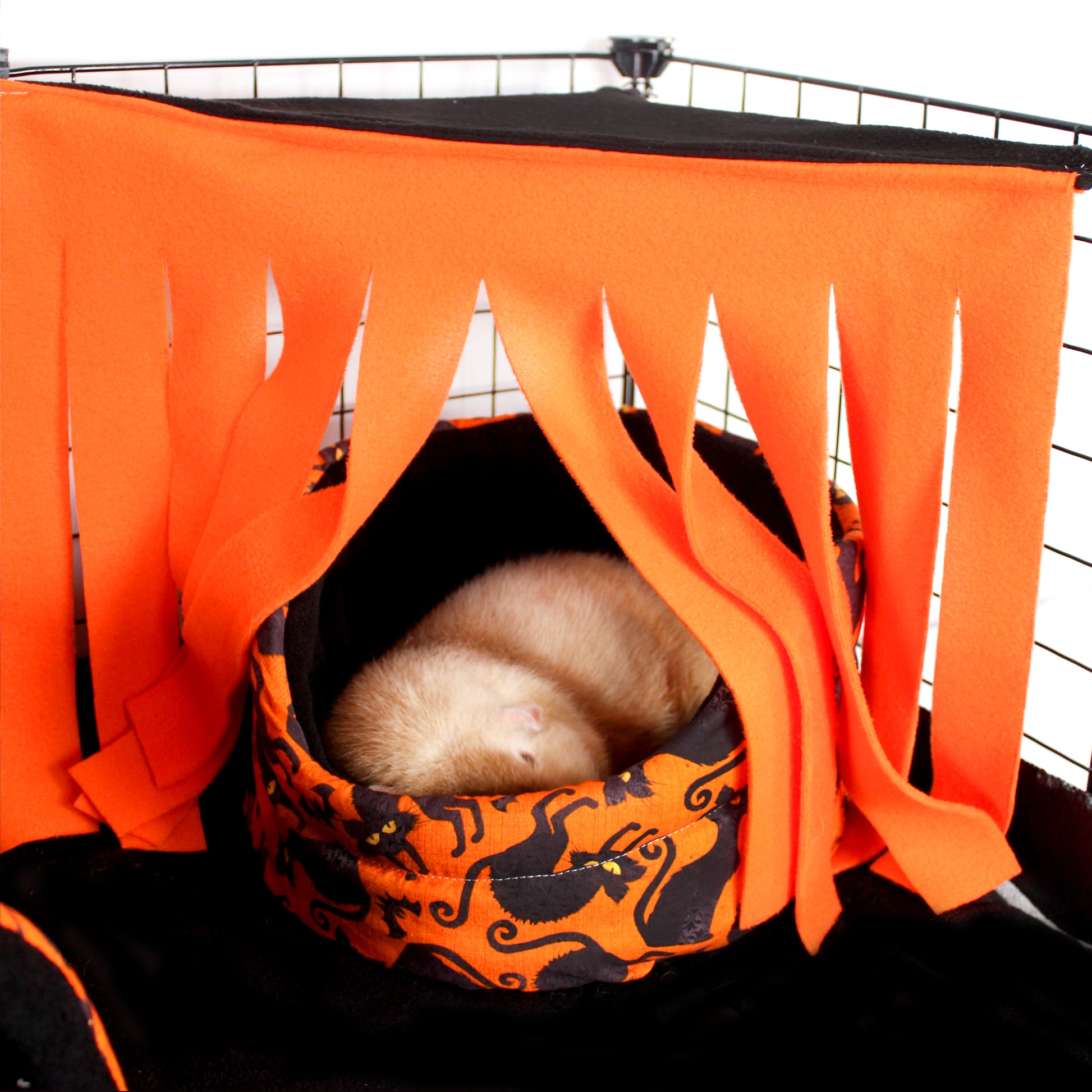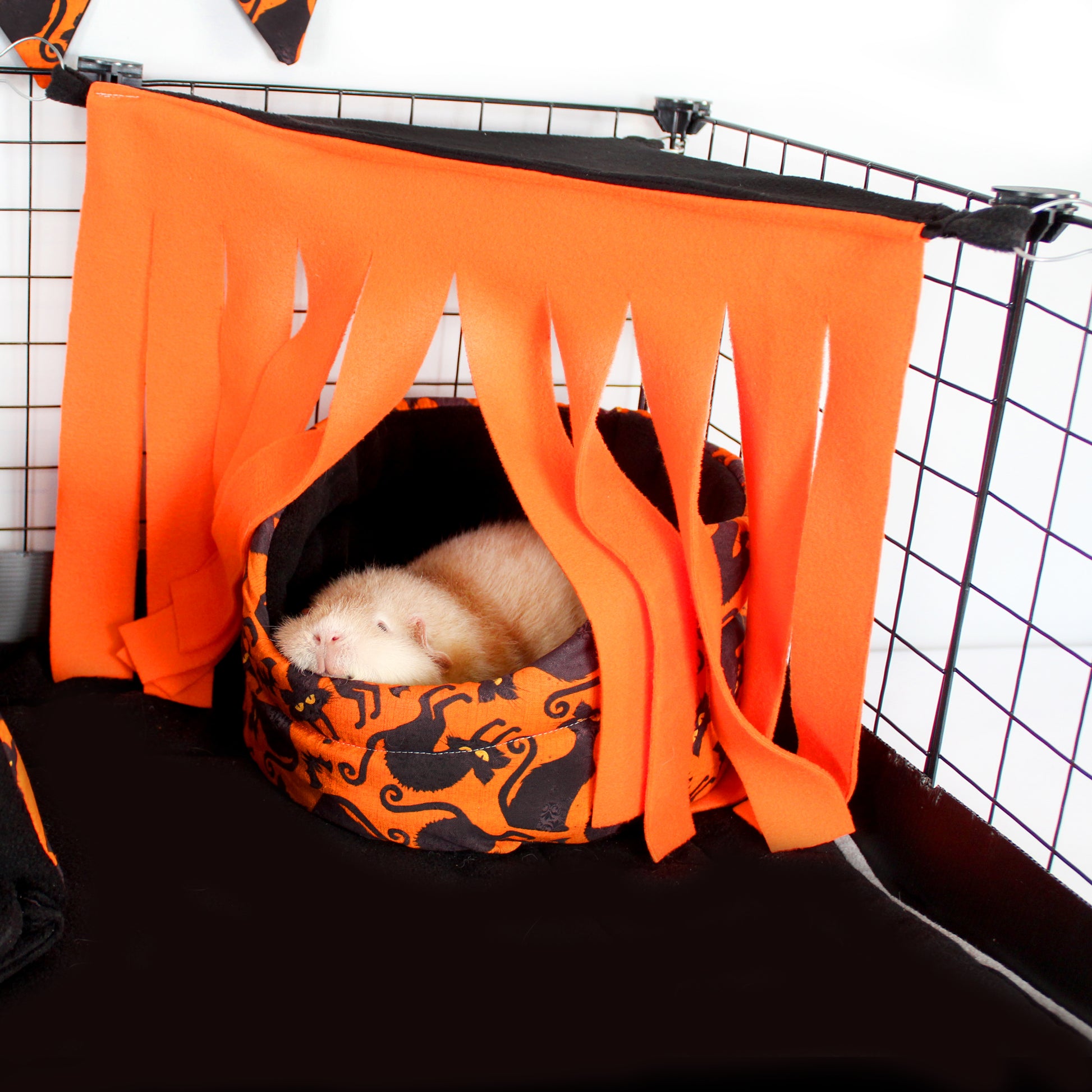 - Halloween Vibes: The vibrant orange cotton outer with a black cat design brings a spooky touch to your guinea pig’s space, making it perfect for Halloween.