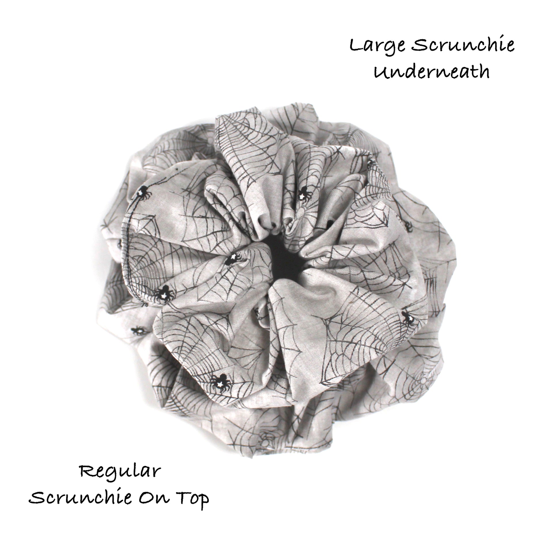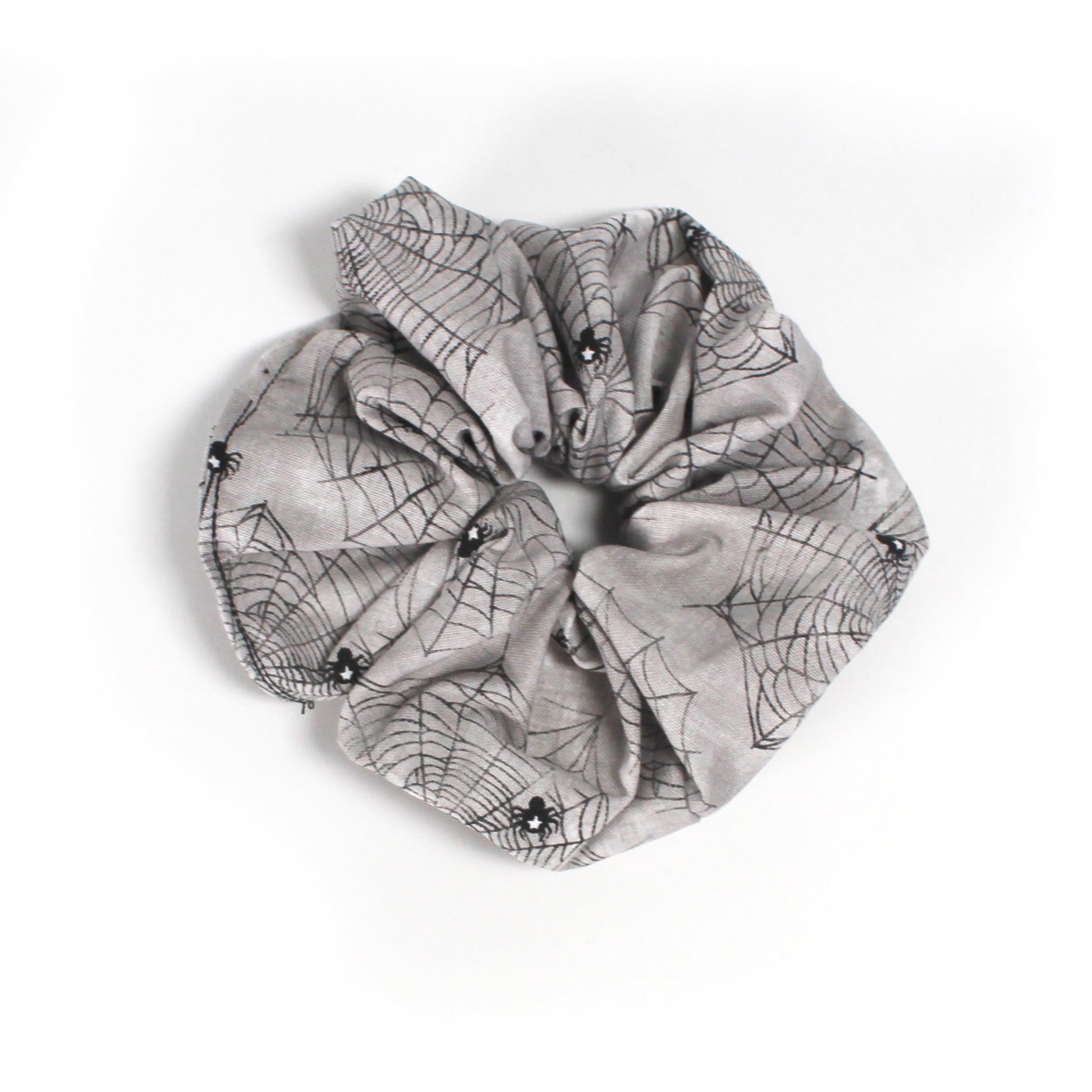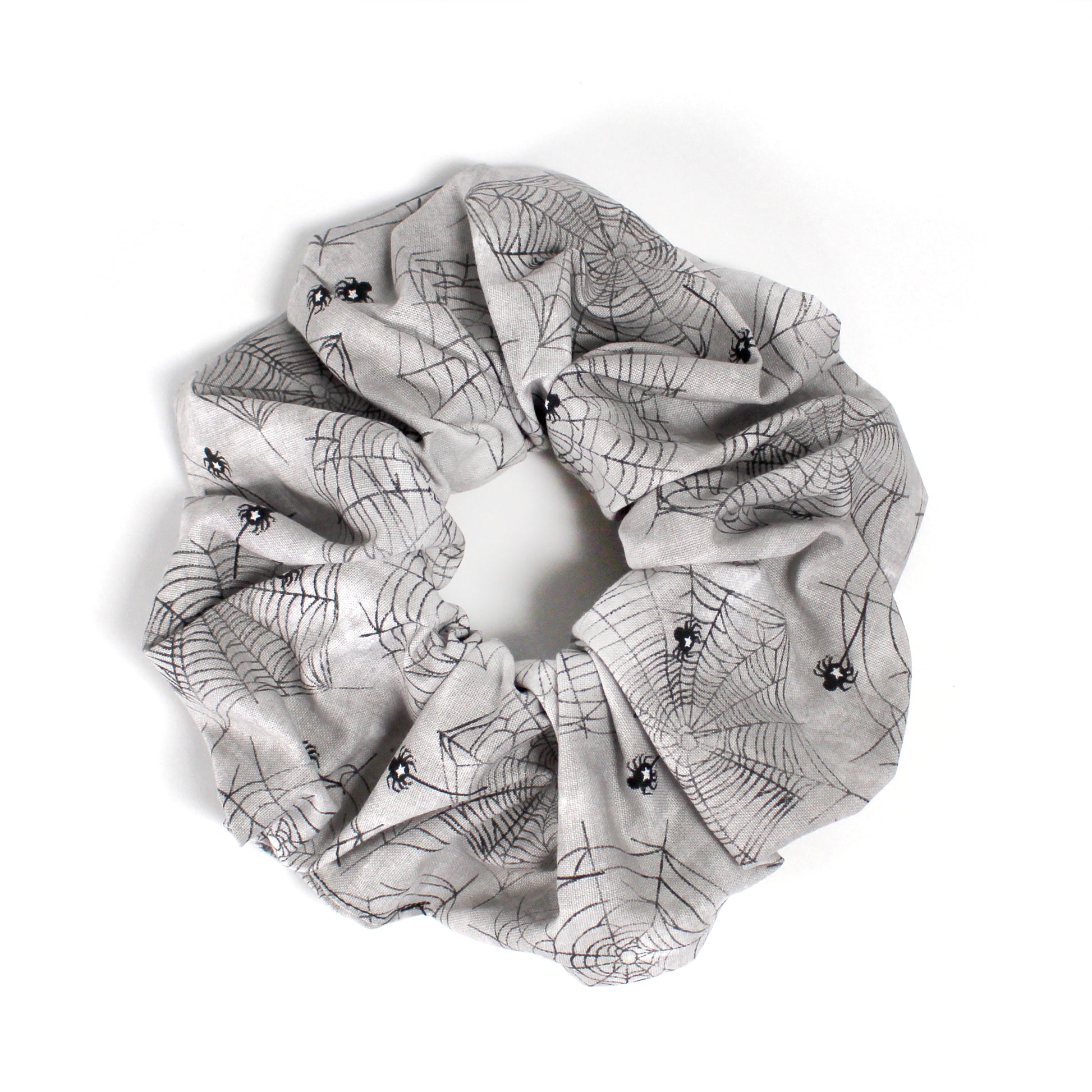 - Eye-Catching Design: Made from soft grey cotton featuring a creepy spider and web pattern, these scrunchies are sure to turn heads.