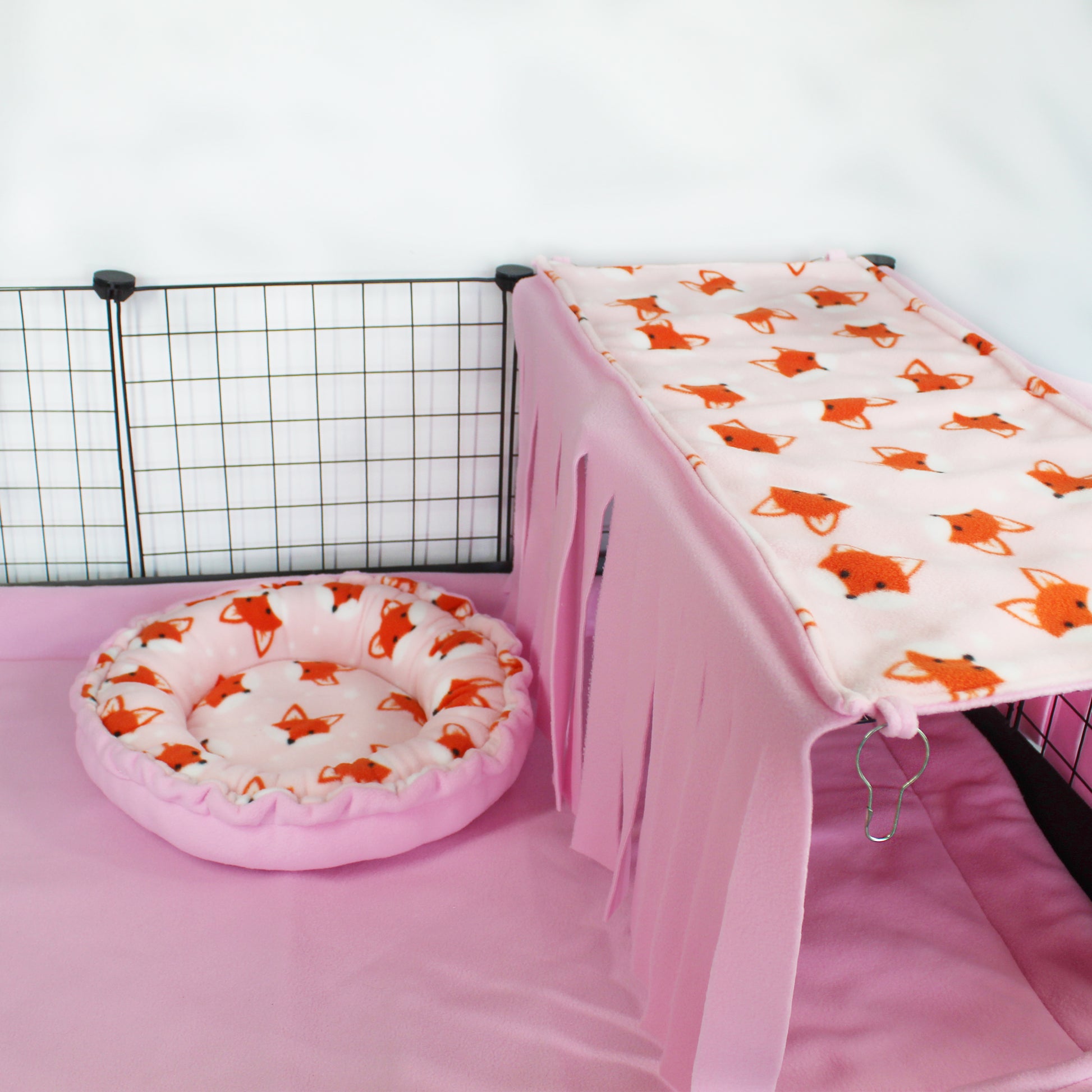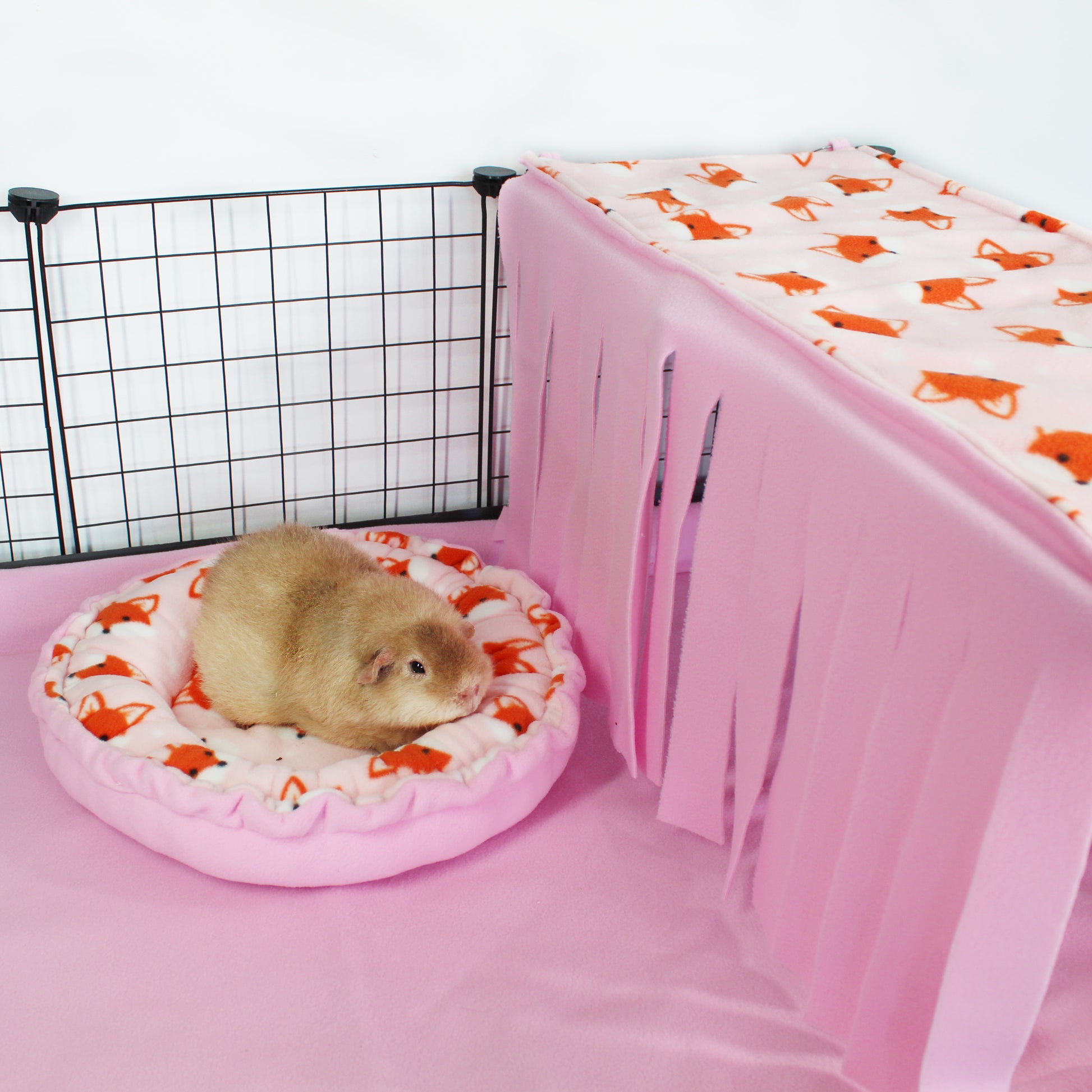 Small animal enthusiasts who love spoiling their furry pal with interactive accessories for guinea pig habitats. Whether you’re creating a themed guinea pig fleece forest or adding a pink pop to your cuddle corner, this piece adds charm and function alike. Ideal for piggies who adore hiding, climbing, and lounging, it coordinates beautifully with our larger Fleece Forest collection and complements prints in the Foxy Fleece collection.