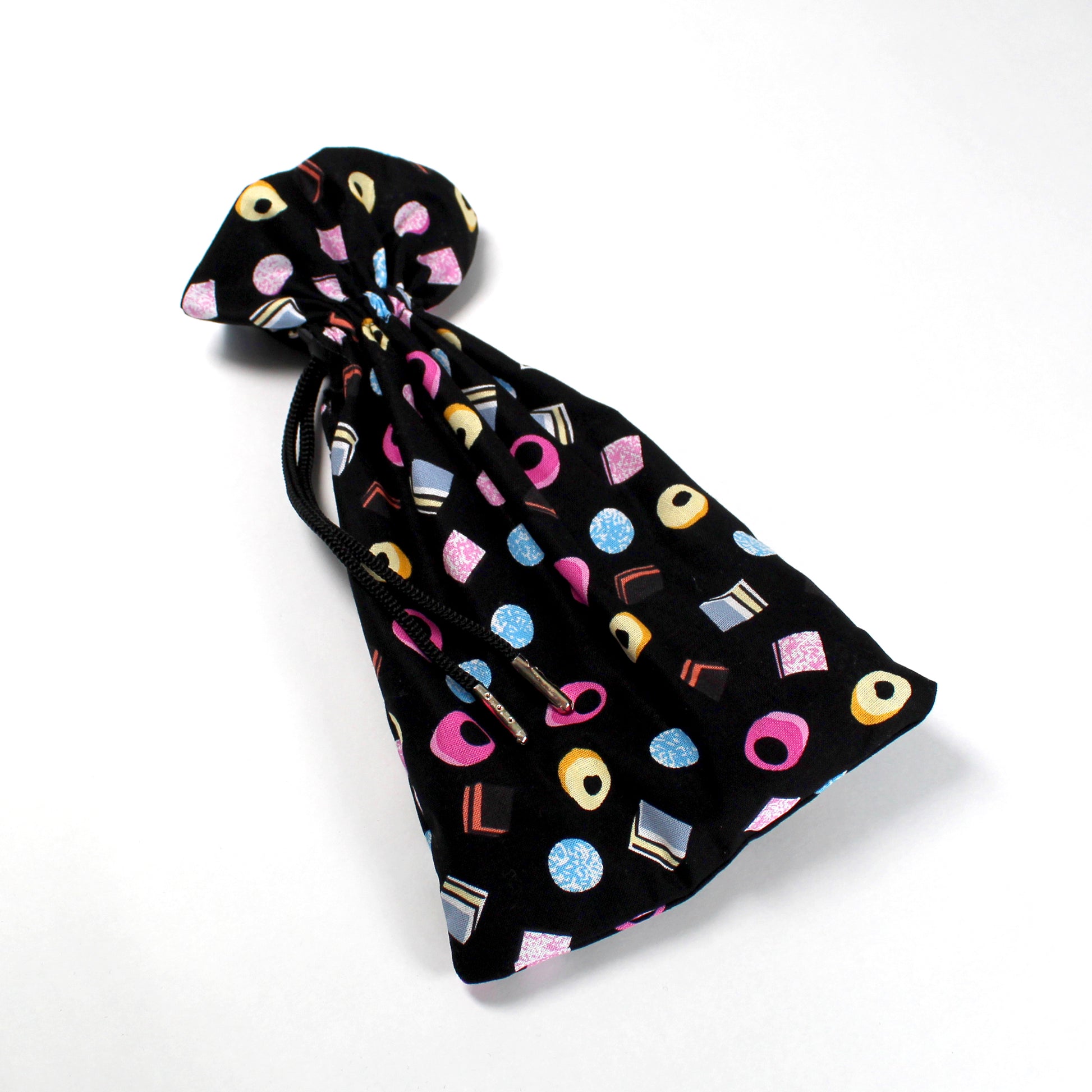 Elevate your on-the-go dining experience with the Limited Edition Liquorice Allsorts Travel Cutlery Set! Enclosed in a sleek black cotton drawstring bag featuring a vibrant Liquorice Allsorts design, this set includes a stainless steel knife, fork, and spoon. Perfect for sweet enthusiasts, our handmade cutlery bag is crafted from offcut waste fabric from our beloved guinea pig products, supporting our zero-waste fabric policy. Grab yours now and enjoy stylish dining, anytime, anywhere!