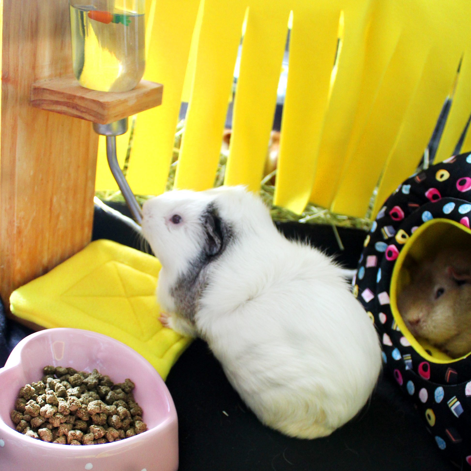 Keep your guinea pig’s home clean and dry with our Pair of Yellow Water Bottle Drop Pads! These adorable, handcrafted pads are the perfect solution for managing leaks from your water bottle and ensuring a fresh environment for your furry friend. Act now to upgrade your guinea pig’s habitat with one of the best accessories for guinea pigs!