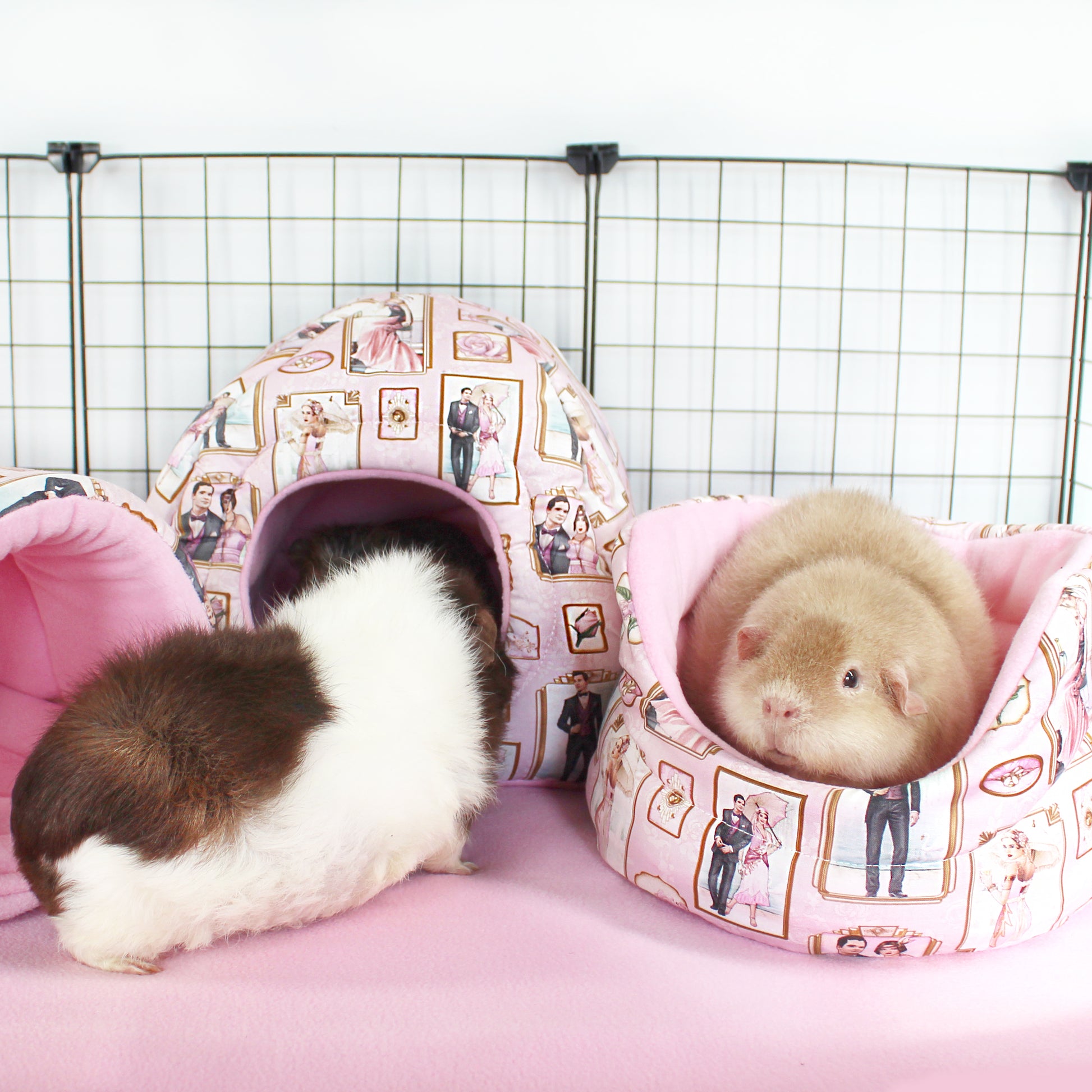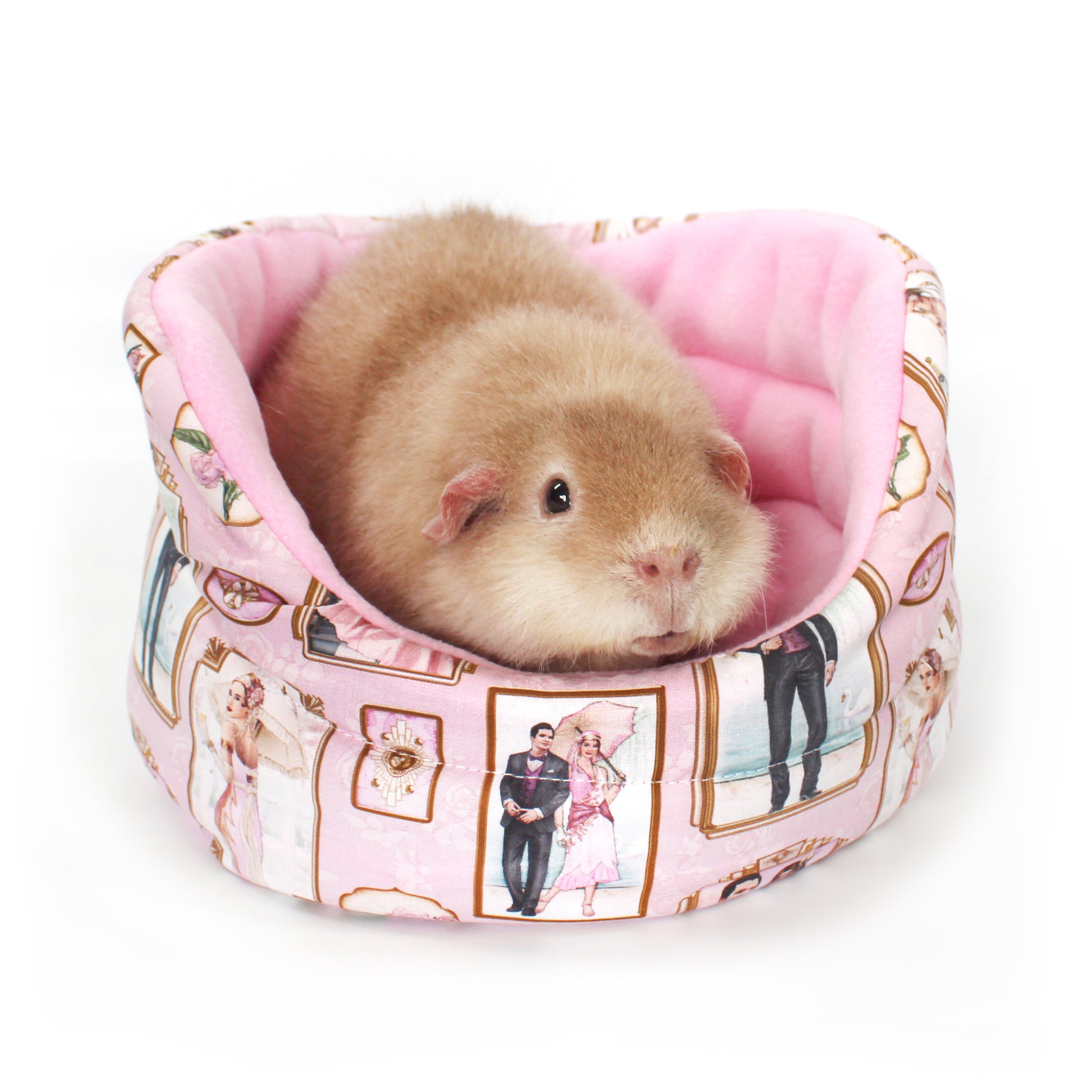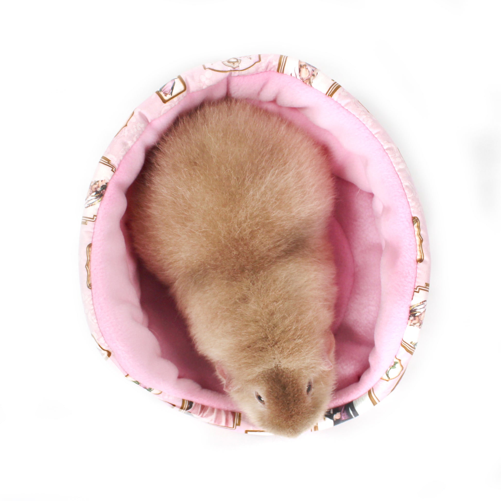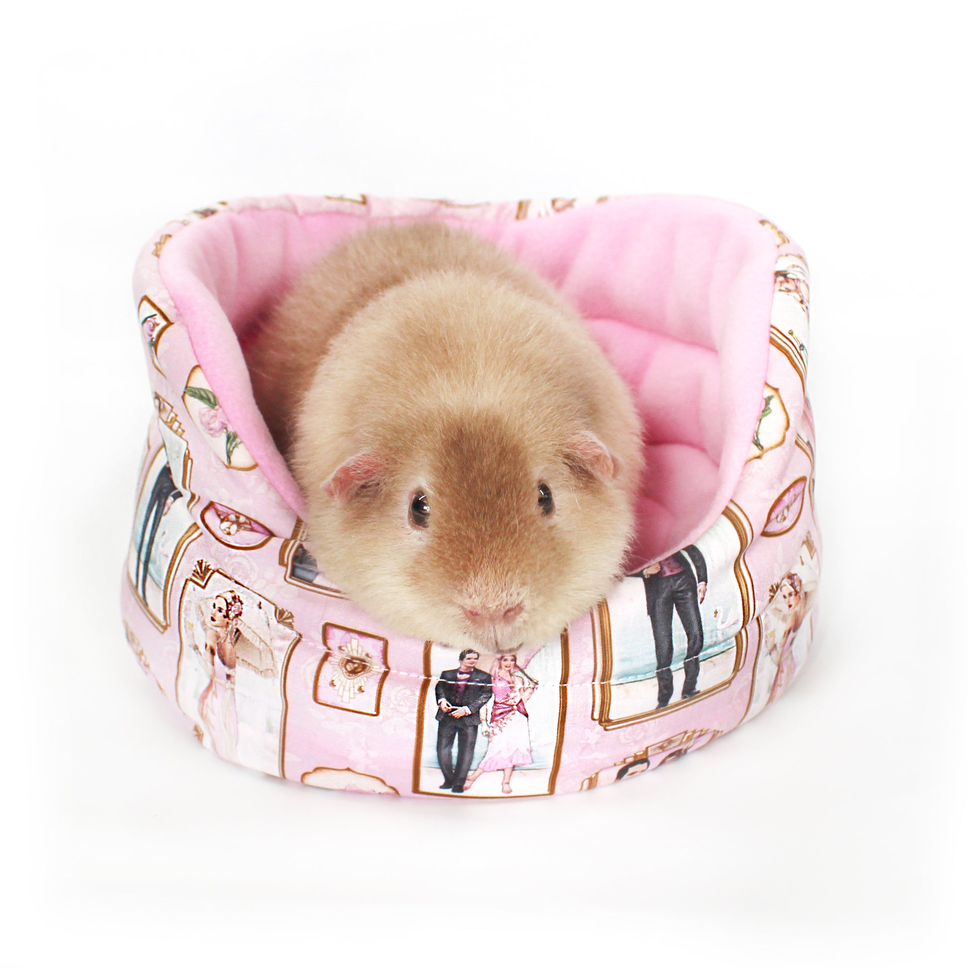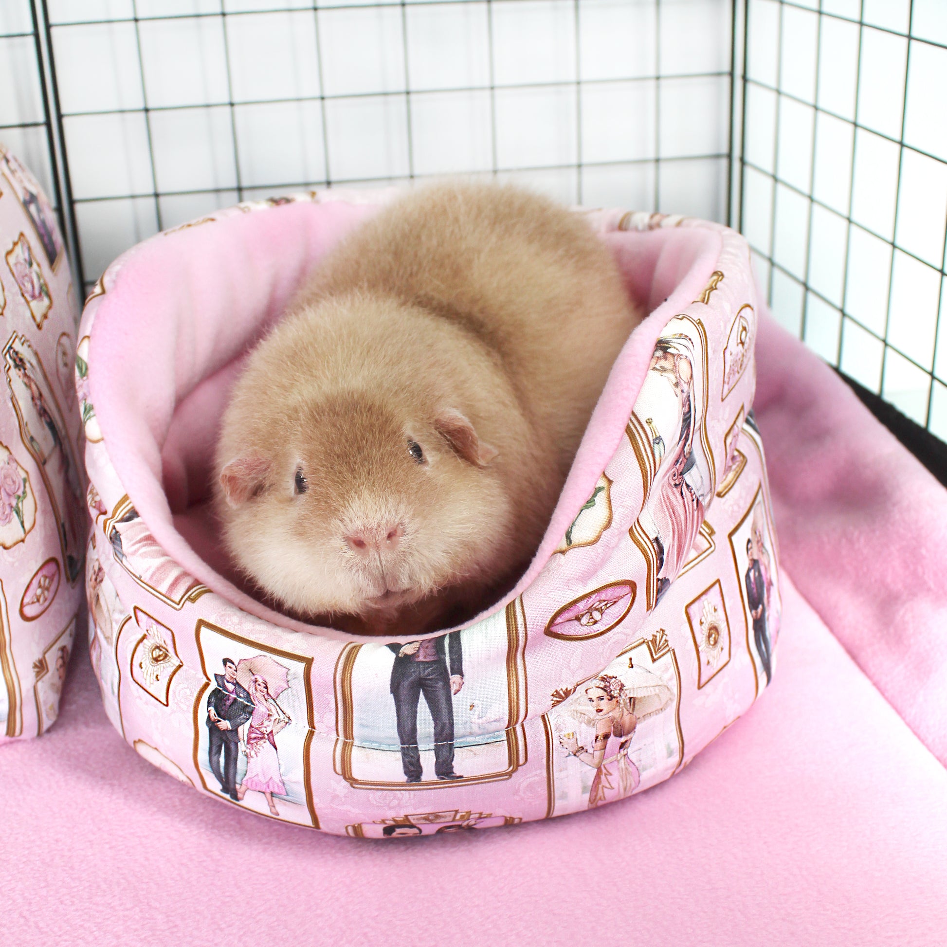 Elevate your guinea pigs' lifestyle with our exclusive Pink Art Deco Cuddle Cup Bed—a luxurious retreat designed for comfort, style, and lasting quality. Inspired by the vibrant 1920s jazz age, this fleece guinea pig bed features a stunning pale pink blue outer cotton with an Art Deco pattern, accented by elegant pink anti-pill fleece and a robust inner 9oz wadding. Give your furry friend the ultimate space for sleeping, relaxing, and adding a touch of class. Shop now and treat your guinea pig to the comfort they deserve!