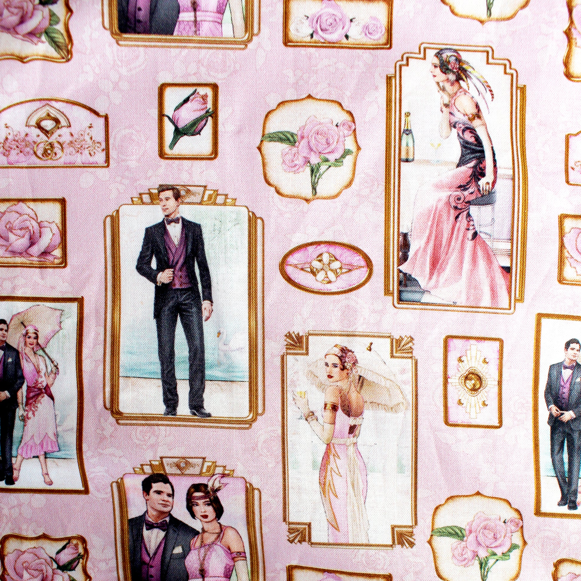 | Outer Layer | Pale pink cotton with a vintage 1920s jazz-age design |