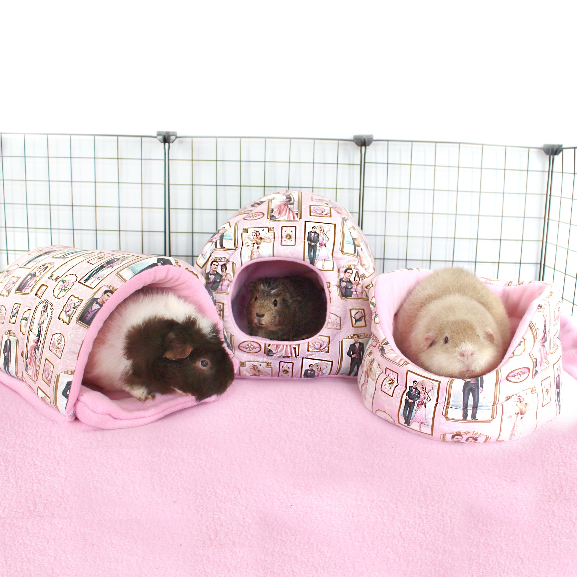 - Multi-Functional Design: This bundle features a cuddle cup, squish tunnel with pee pad, and a hidey hut for guinea pigs—ideal for play, sleep, and hideaways.