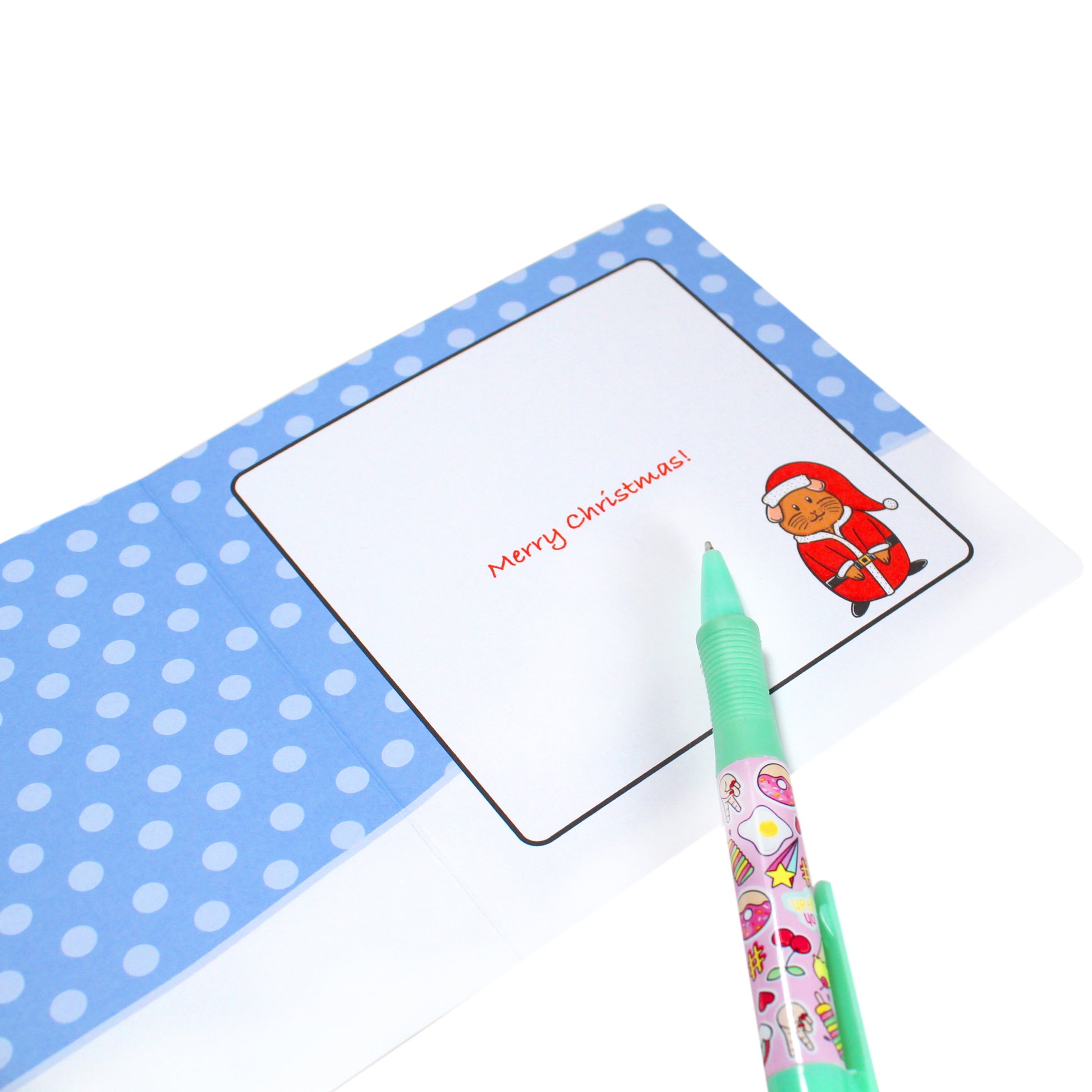 Here's a handy table summarizing the features of our Santa Piggy Guinea Pig Christmas Card: