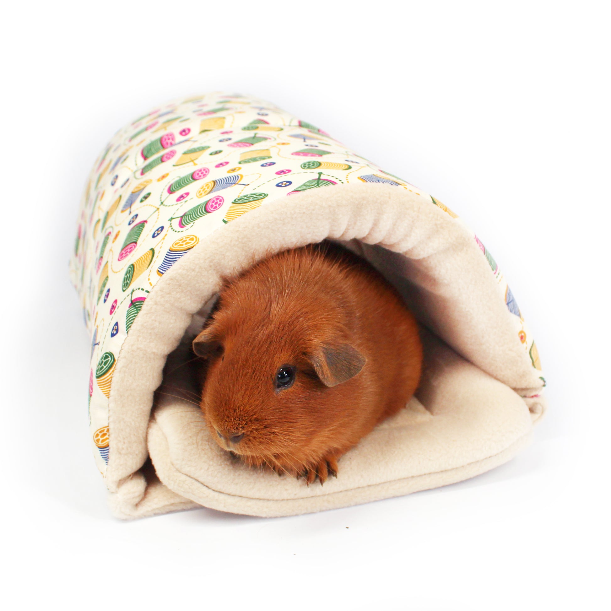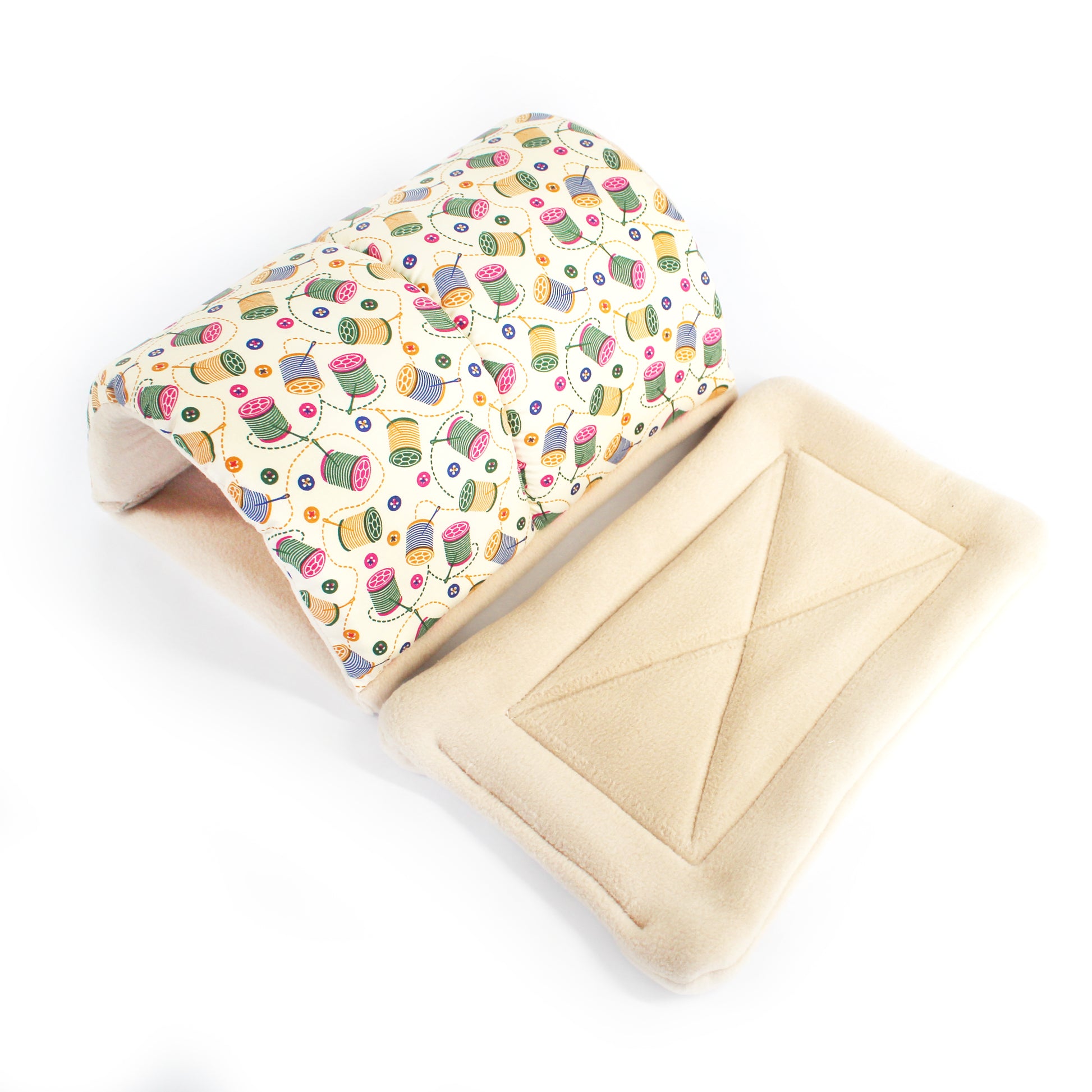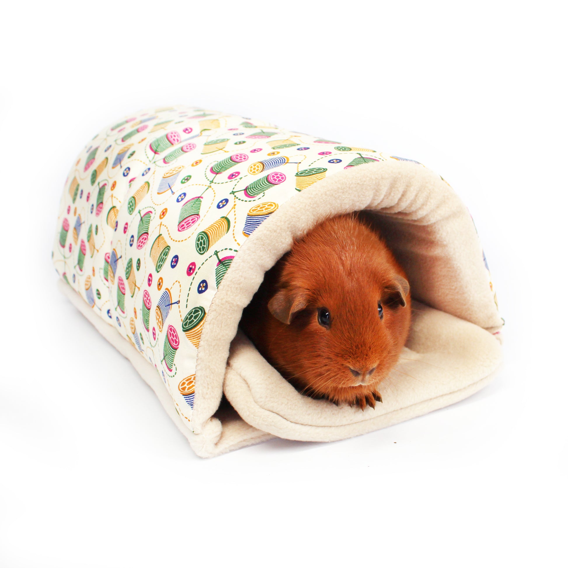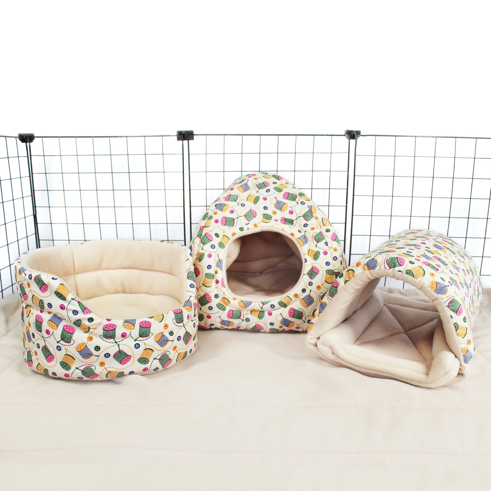 Looking to create a dream home for your guinea pigs and save money while you're at it? The Sew Sweet Guinea Pig Accessory Bundle is your all-in-one retro-chic solution for a stylish, snuggly, and coordinated cage setup. Featuring a charming beige cotton outer adorned with spools, buttons, needles, and thread, this limited-edition set is as pretty as it is practical.