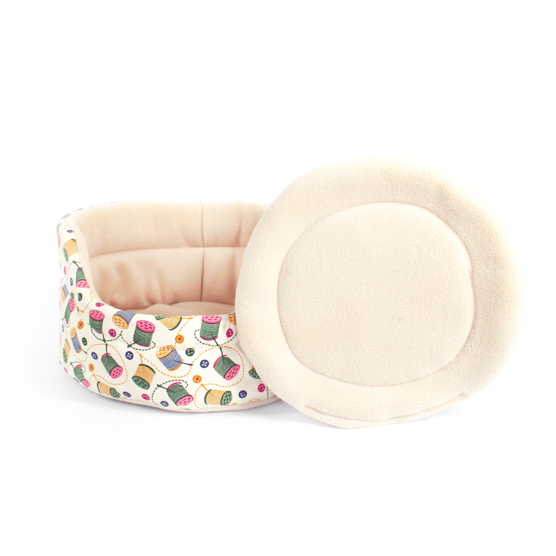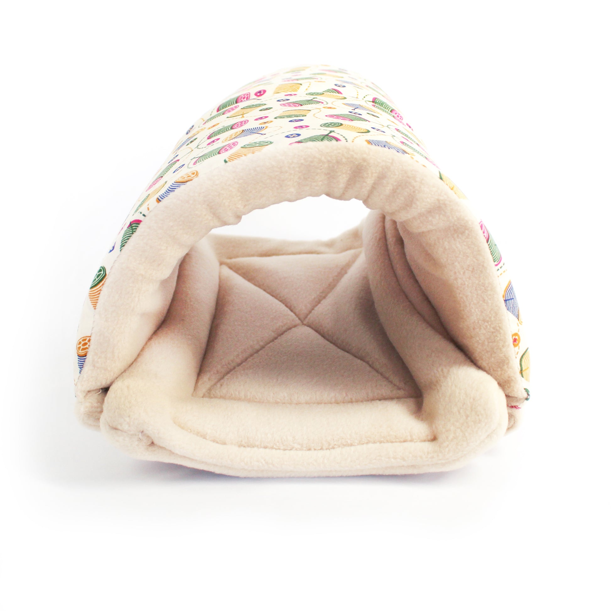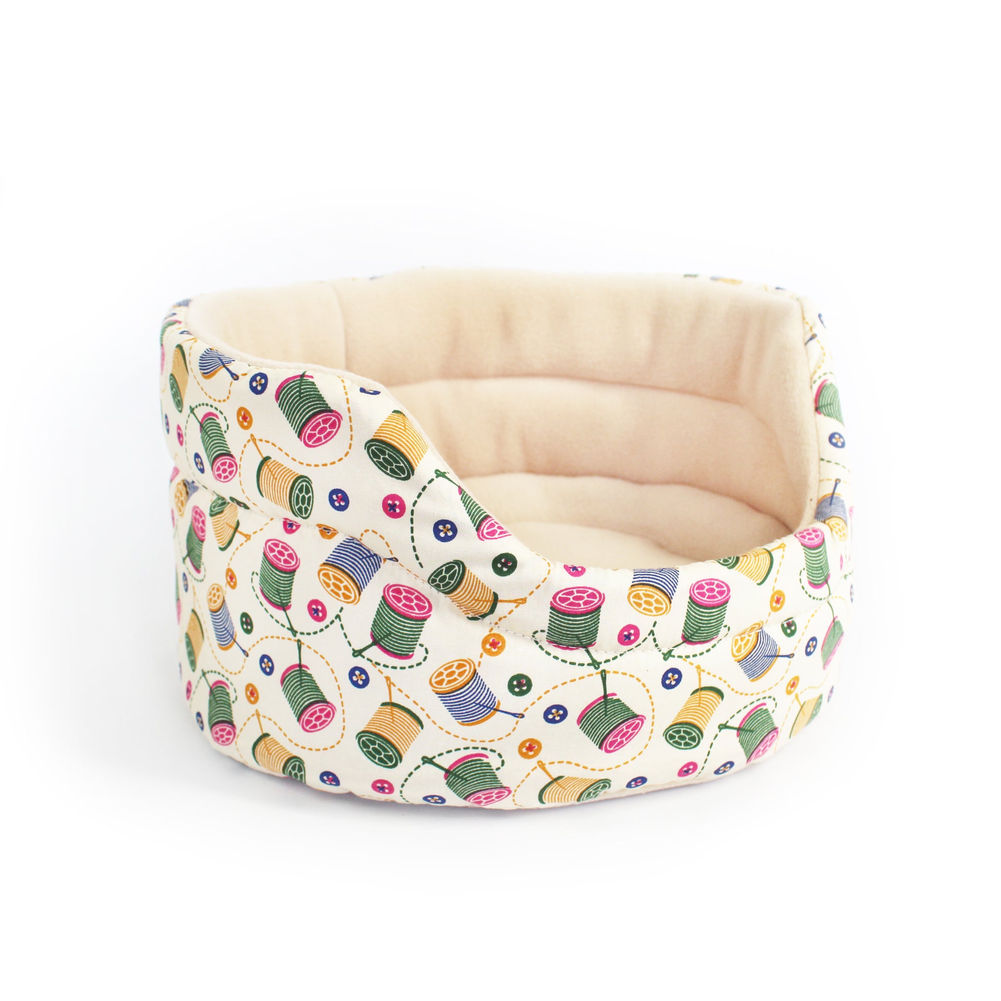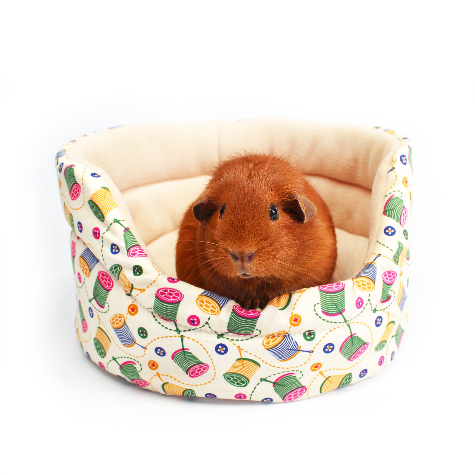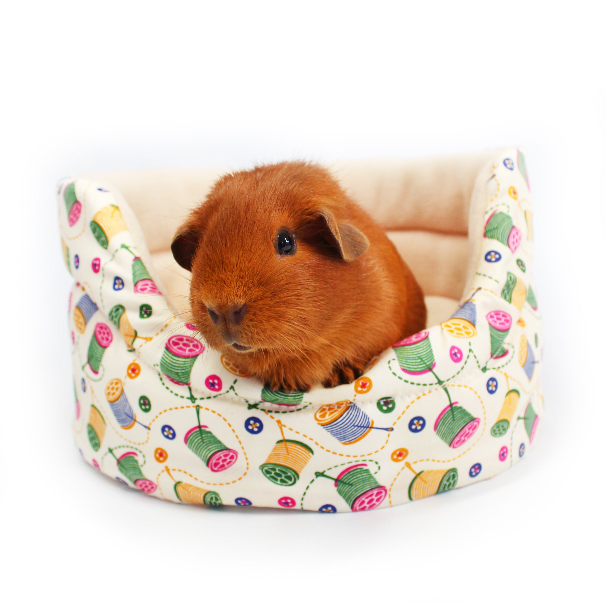 Looking to create a dream home for your guinea pigs and save money while you're at it? The Sew Sweet Guinea Pig Accessory Bundle is your all-in-one retro-chic solution for a stylish, snuggly, and coordinated cage setup. Featuring a charming beige cotton outer adorned with spools, buttons, needles, and thread, this limited-edition set is as pretty as it is practical.