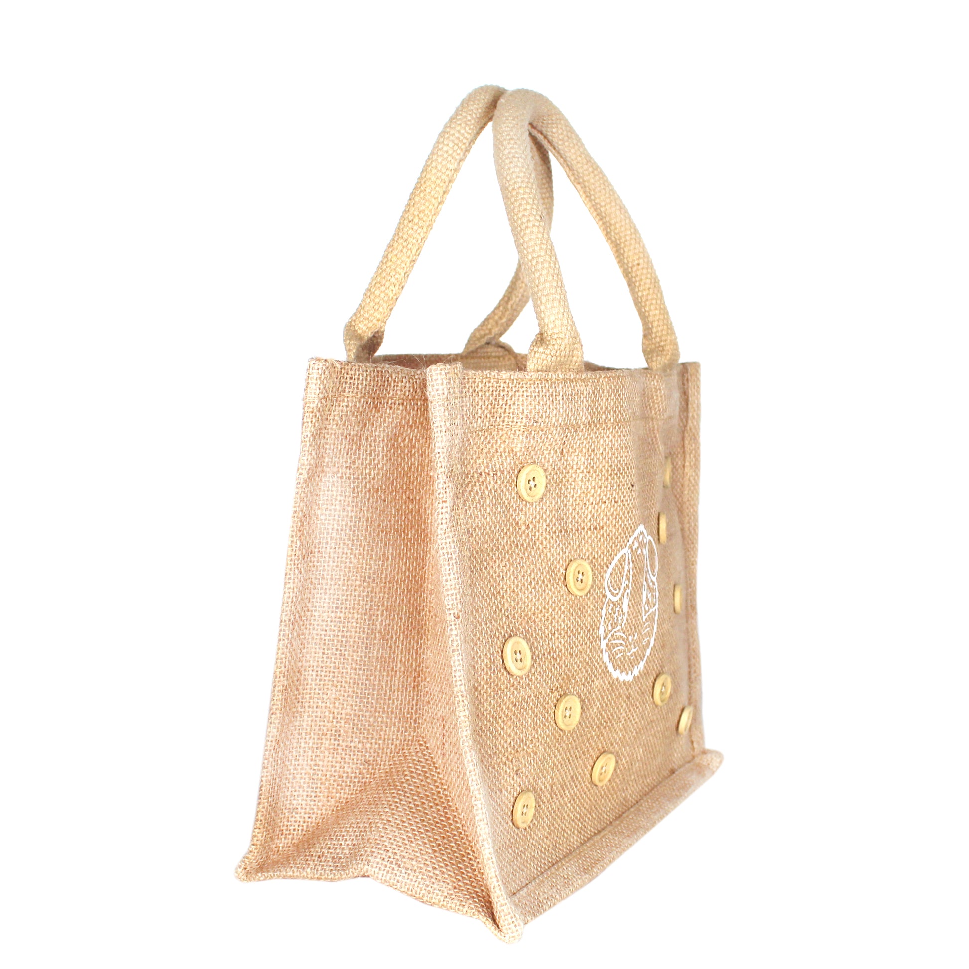 This high quality hessian like bag comes in a lunch bag size but is very versatile for a variety of uses and occasions.