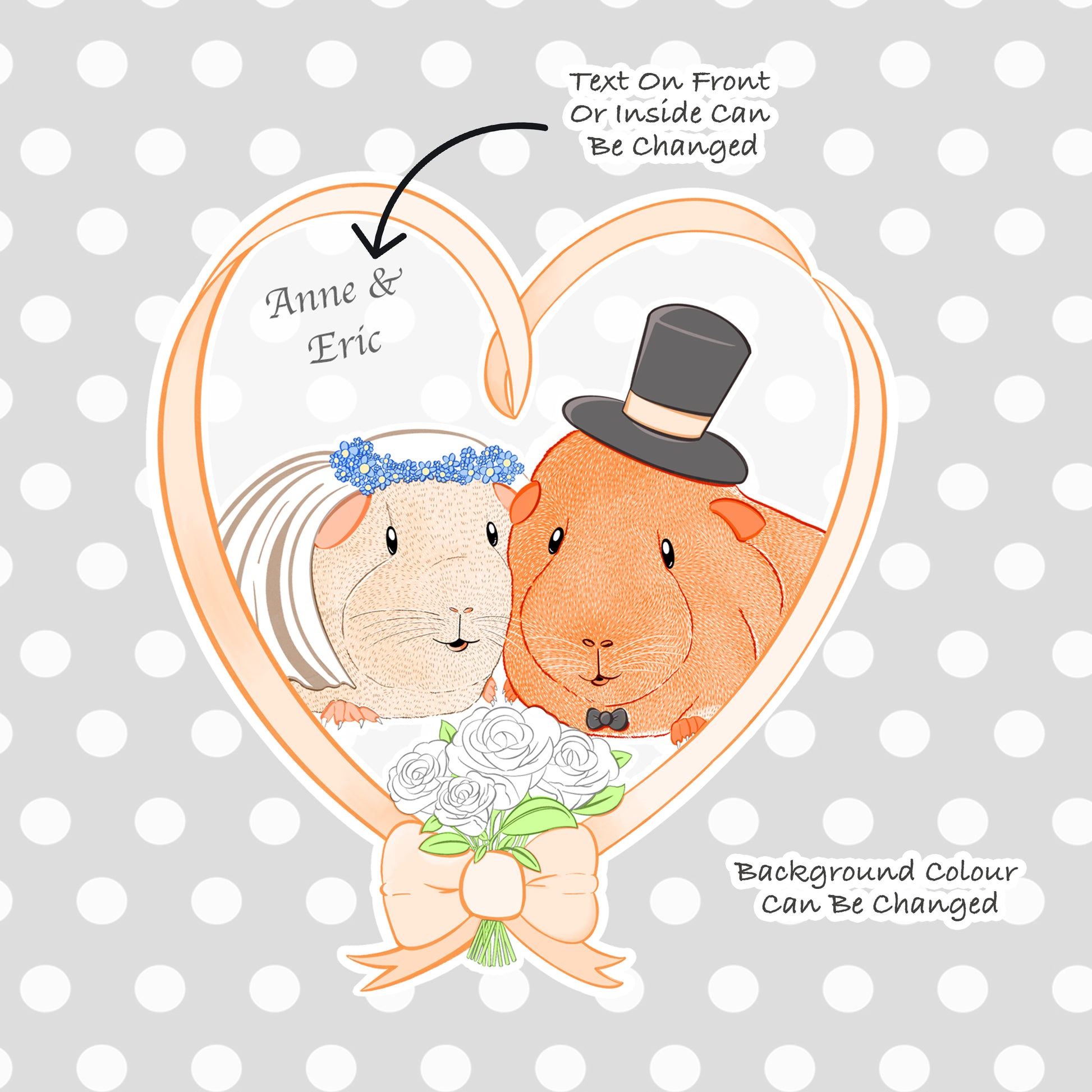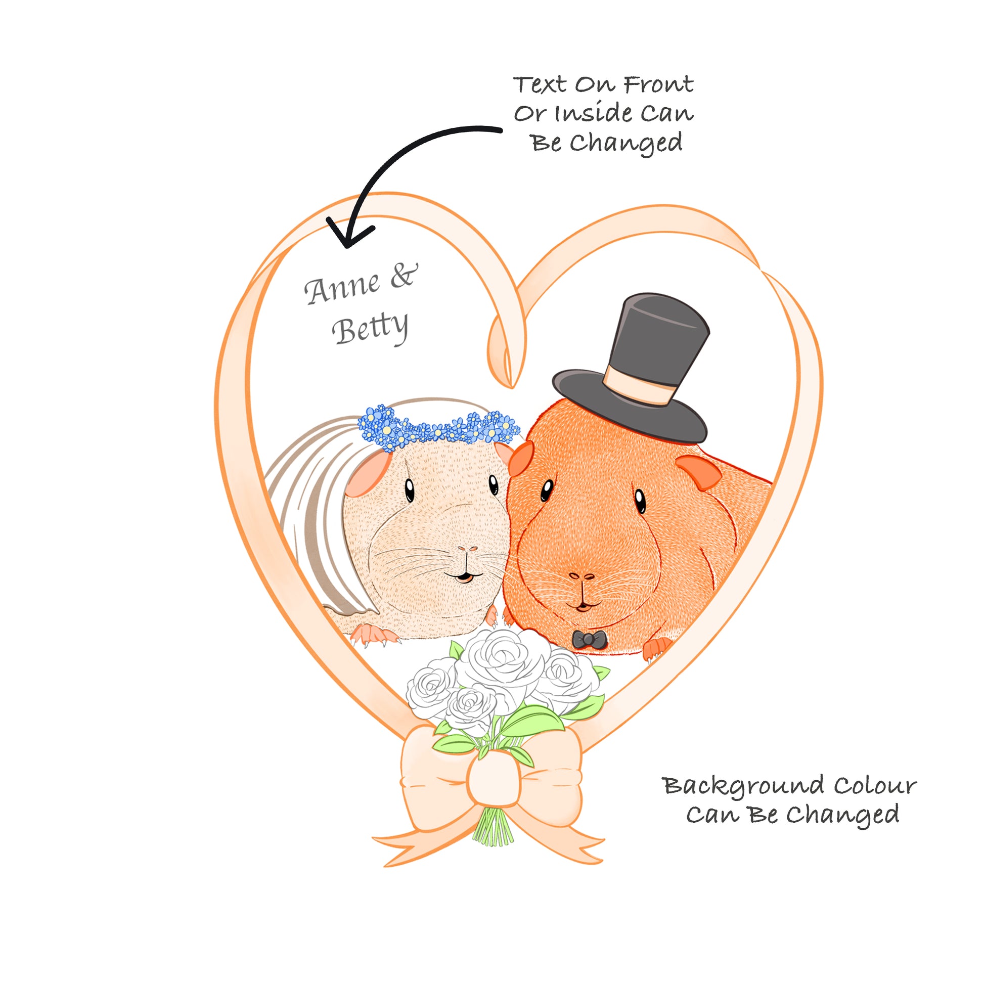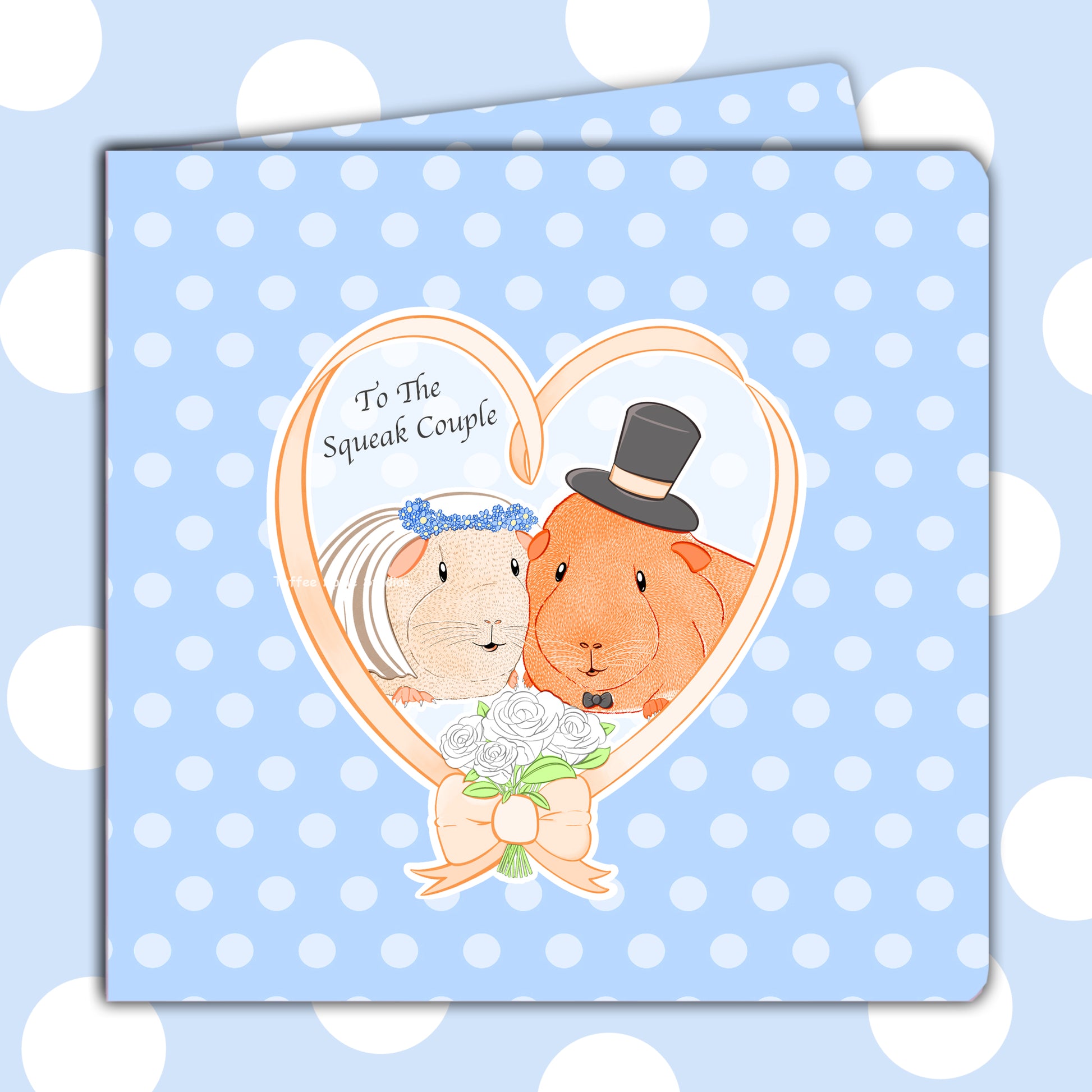 The guinea pig wedding illustration on the front of the card has been inspired by our own herd and we hope you love it as much as we did creating it.