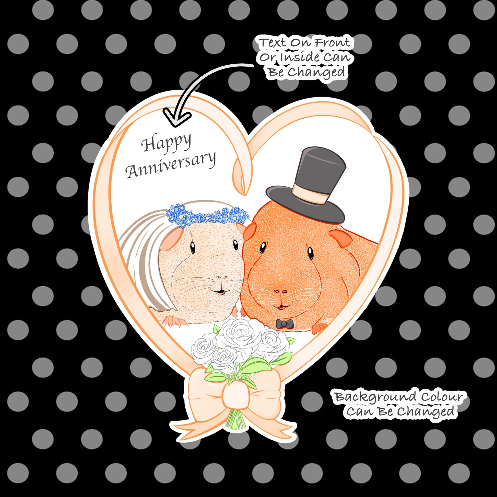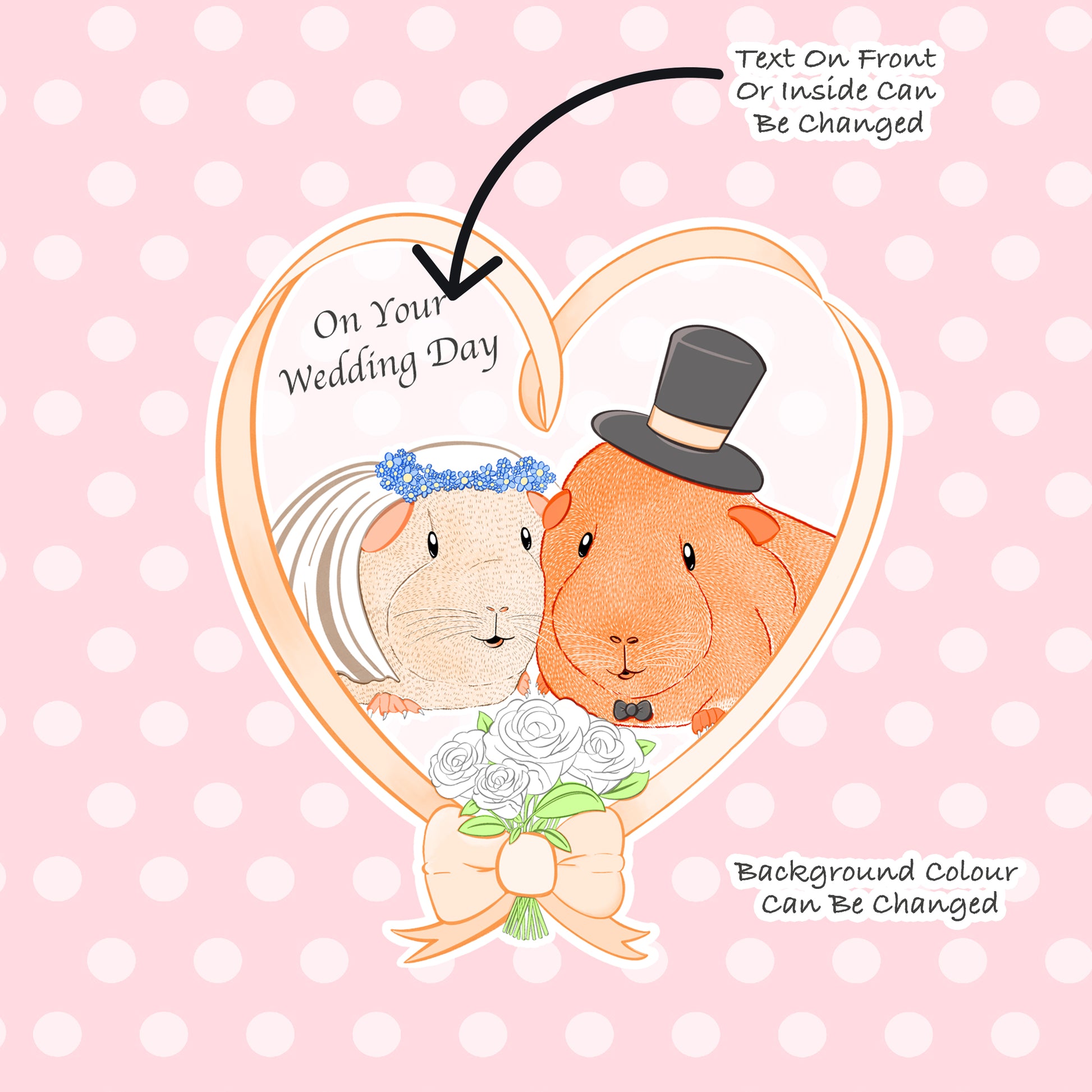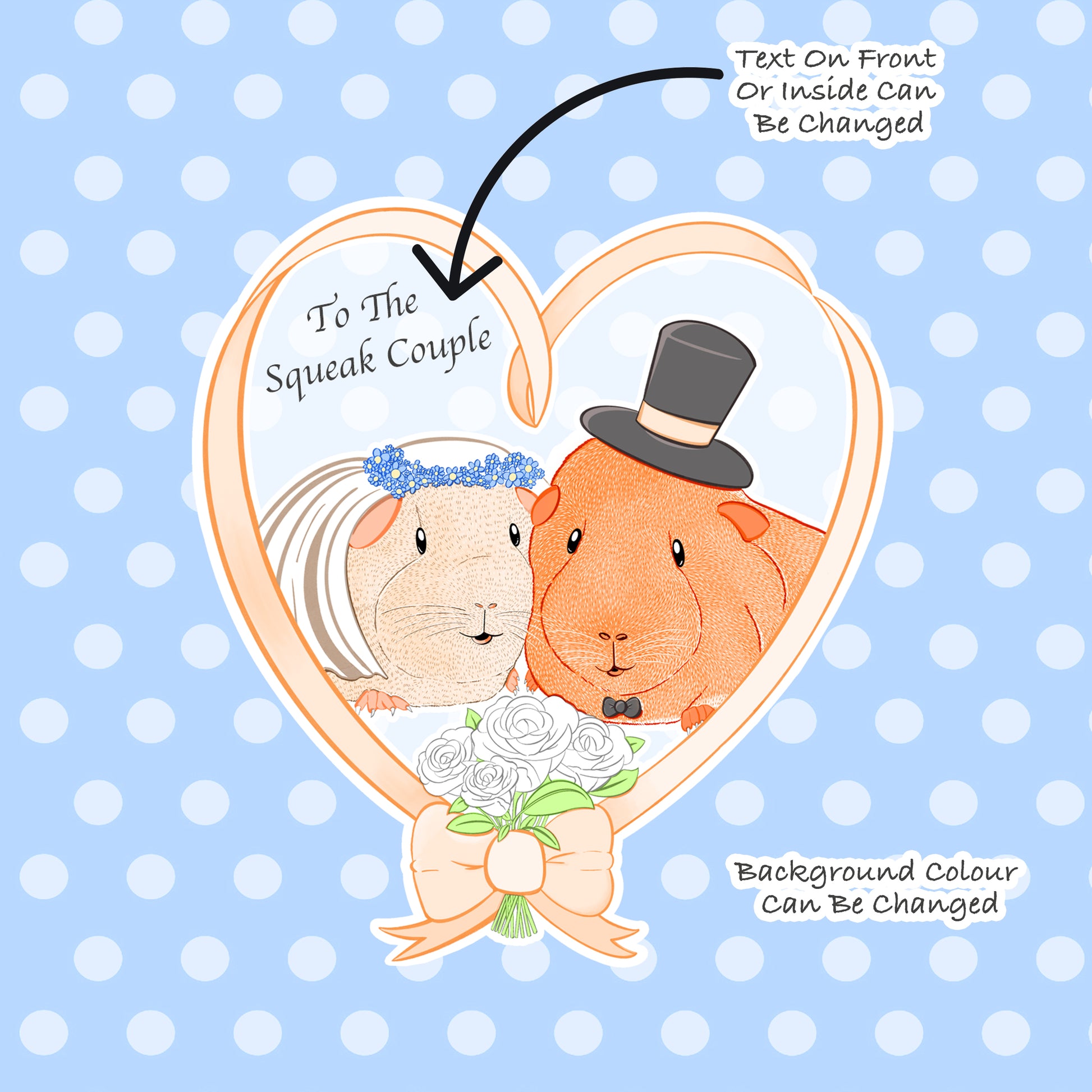 The guinea pig wedding illustration on the front of the card has been inspired by our own herd and we hope you love it as much as we did creating it.