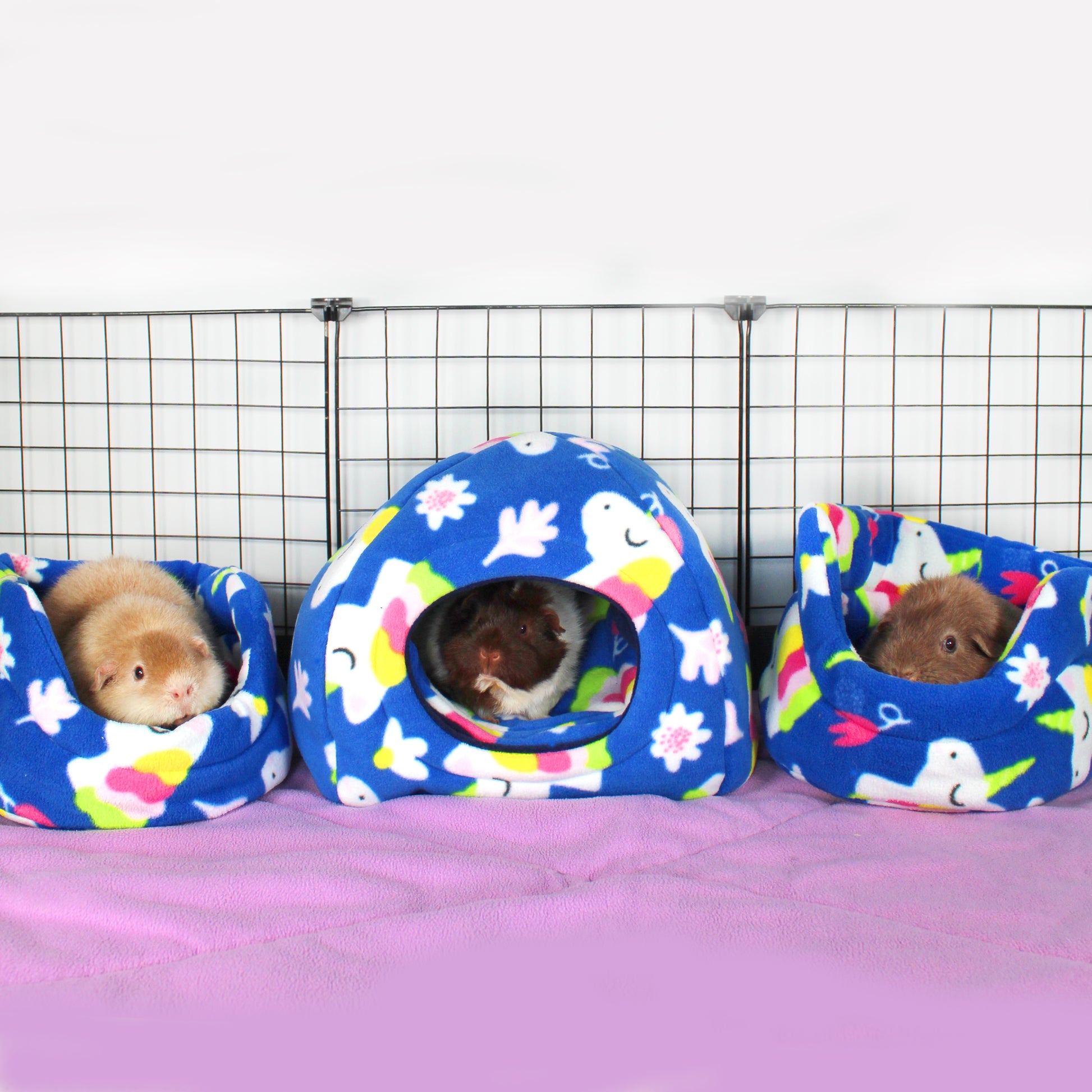 Transform your guinea pig's cage into a magical unicorn paradise with our Unicorn Guinea Pig Accessory Bundle! Featuring two ultra-cozy Cuddle Cup Beds and a Hidey House with a matching Zorb Pee Pad, this set is designed to give your guinea pig the ultimate comfort while adding a sprinkle of whimsical charm.