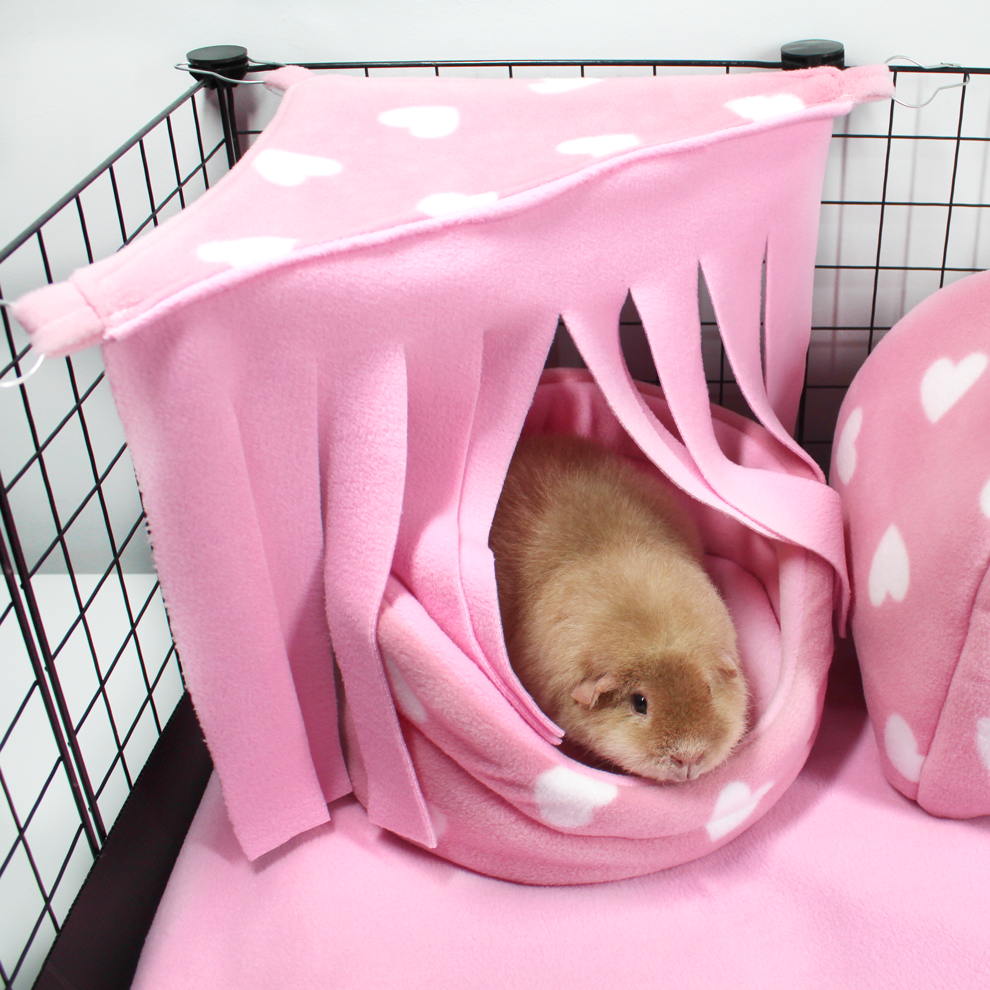 - Adorable Design: Dusky pink fleece outer with a white heart pattern adds a splash of love and personality to your guinea pig’s habitat.
