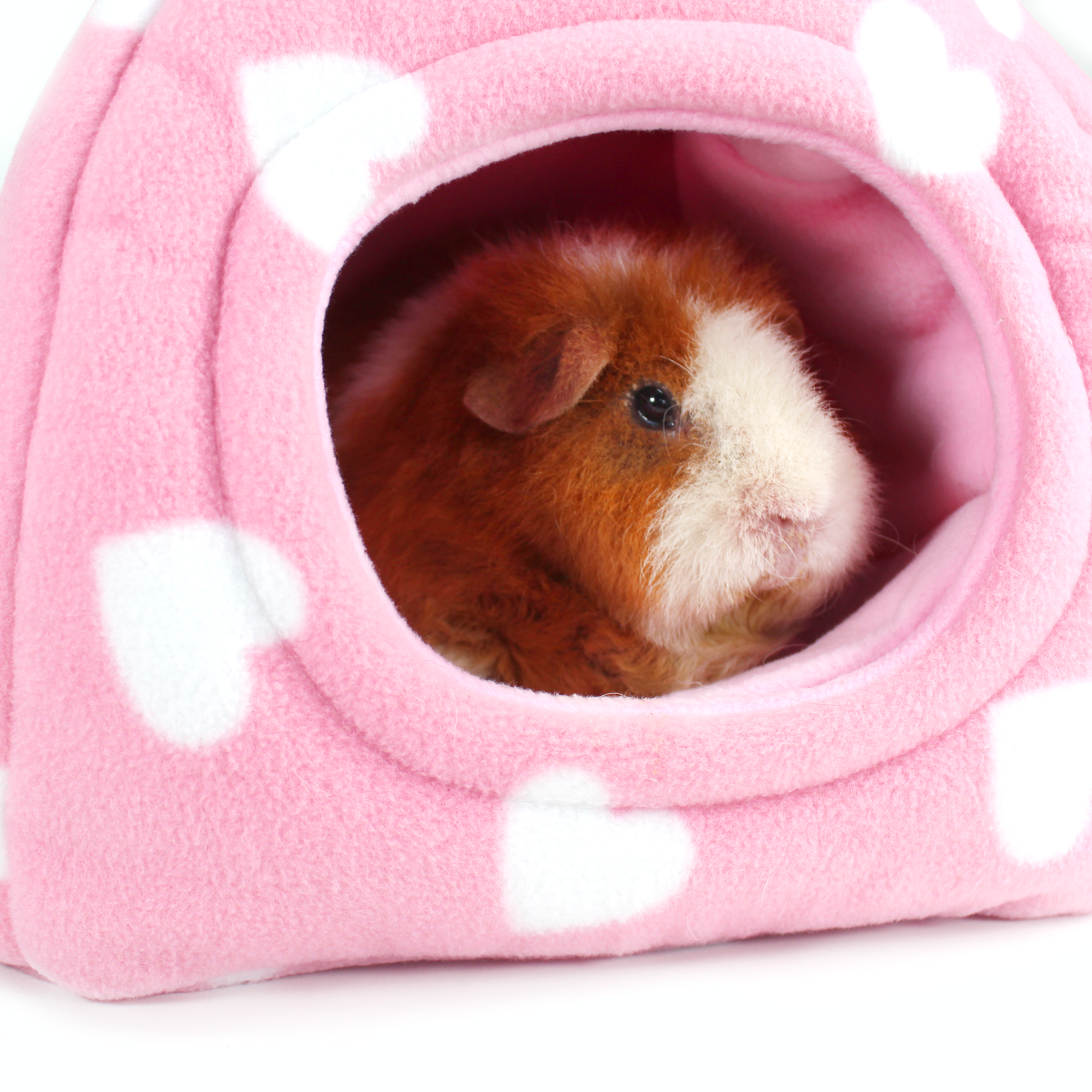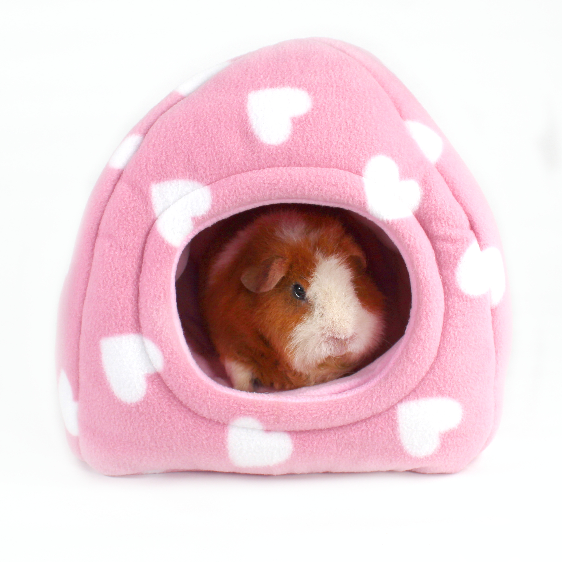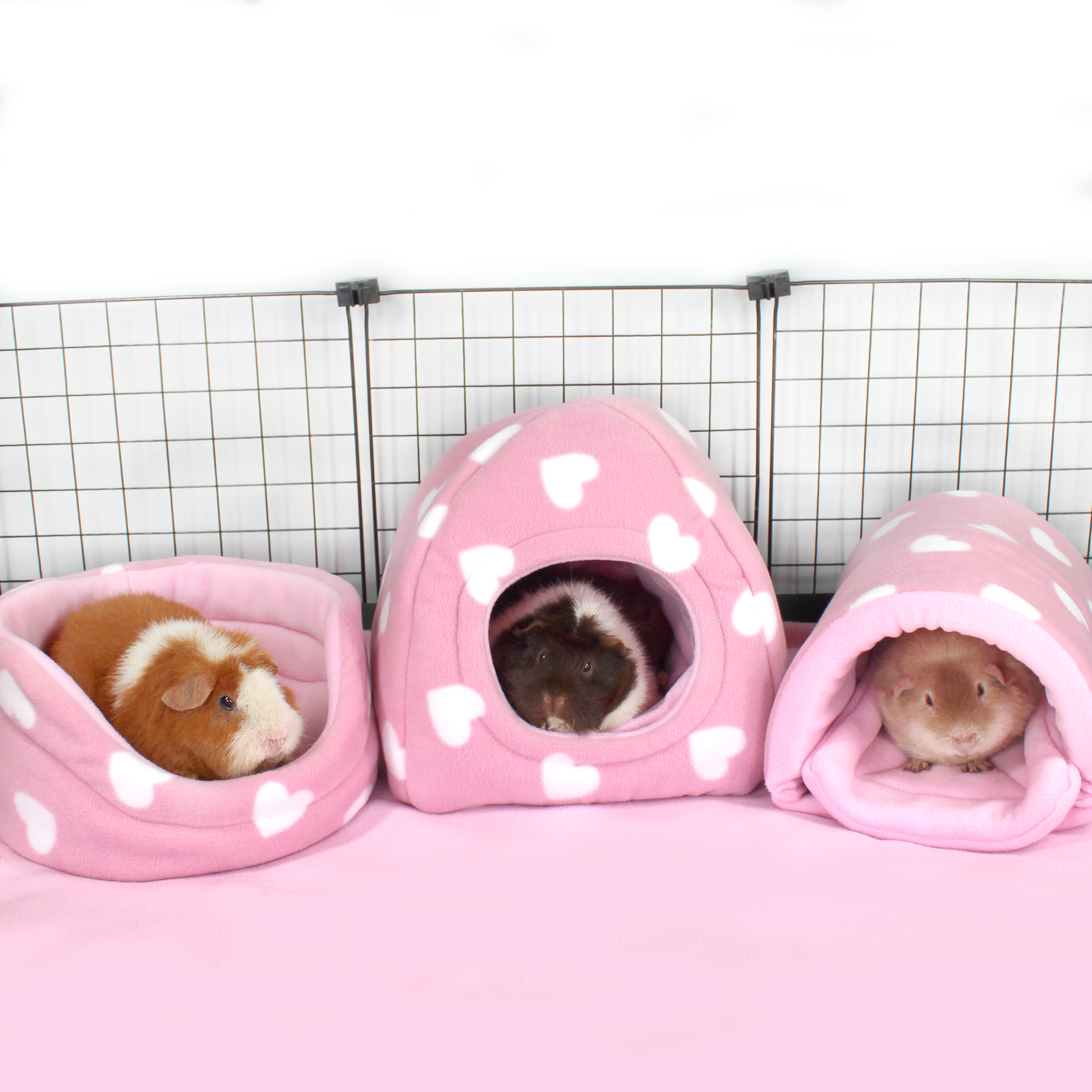 Dusky pink anti-pill fleece outer with a sweet white heart pattern adds a touch of romance to your guinea pig's cage. -